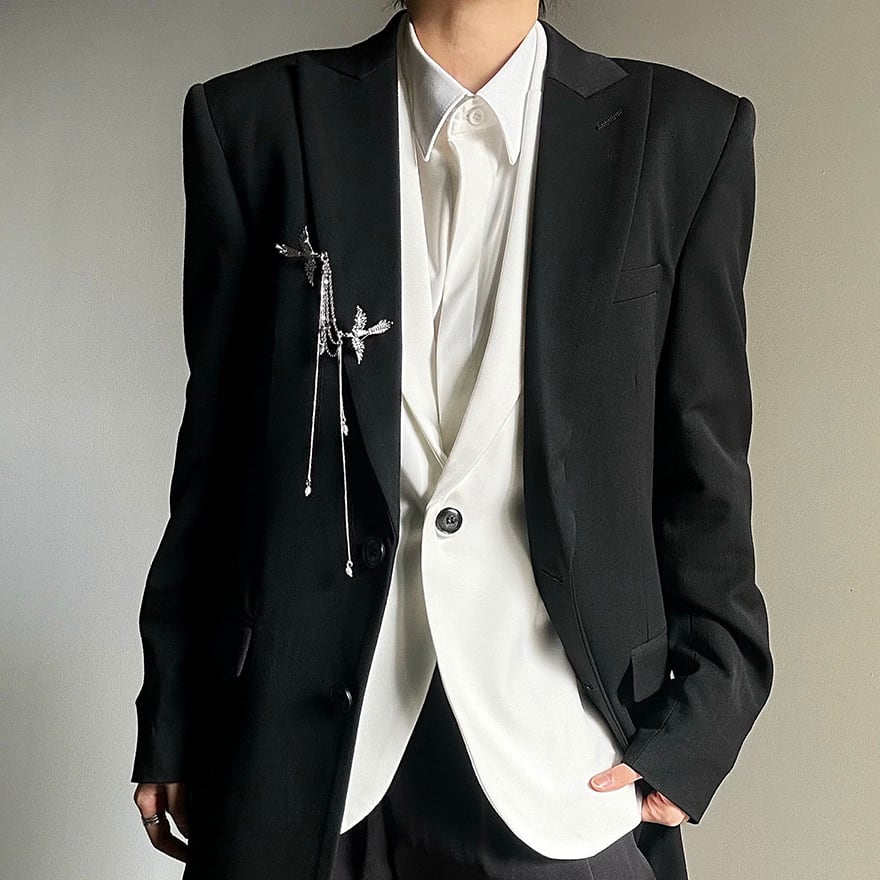 これ一着で「王子系(皇子系)」「ユニセックス・モード」な世界観が完成します。 フリルのある立ち襟シャツと合わせればクラシックなゴシックスタイルに、シンプルなタートルネックと合わせれば現代的なダークモードにと、幅広いコーディネートを格上げしてくれる主役級のアイテムです。