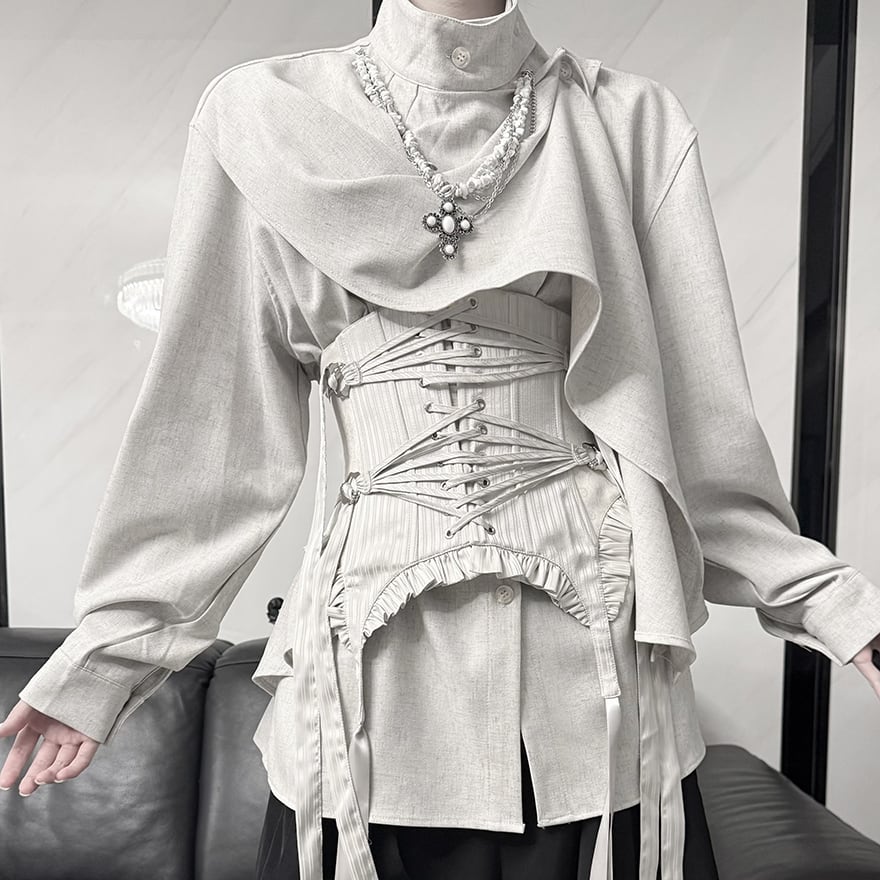 男装 スタンドカラー シャツ レイヤード ユニセックス コンカフェ 男装カフェ