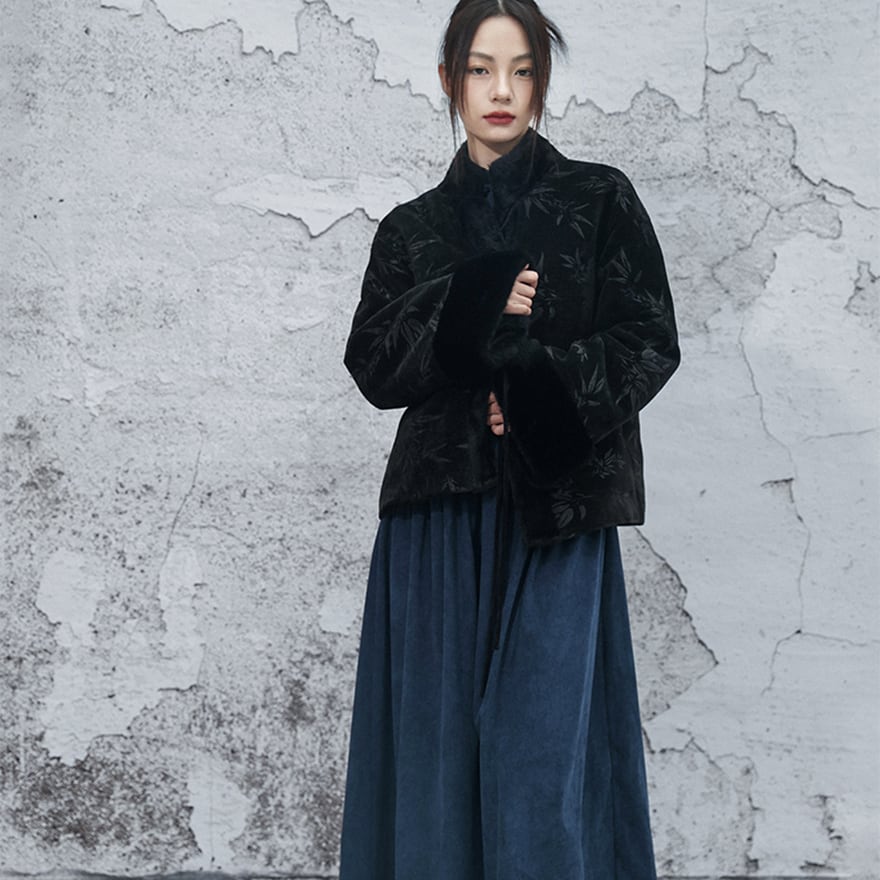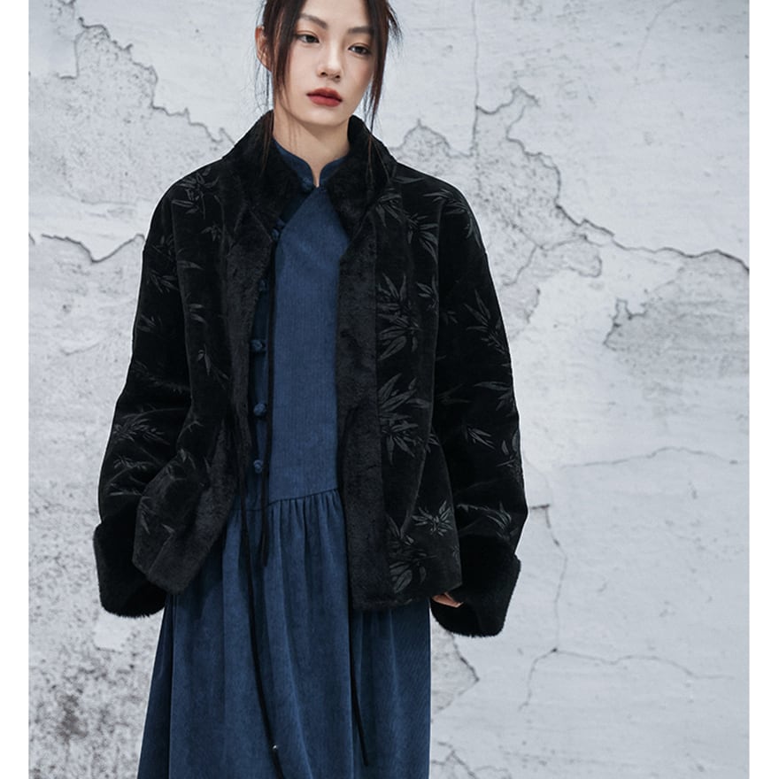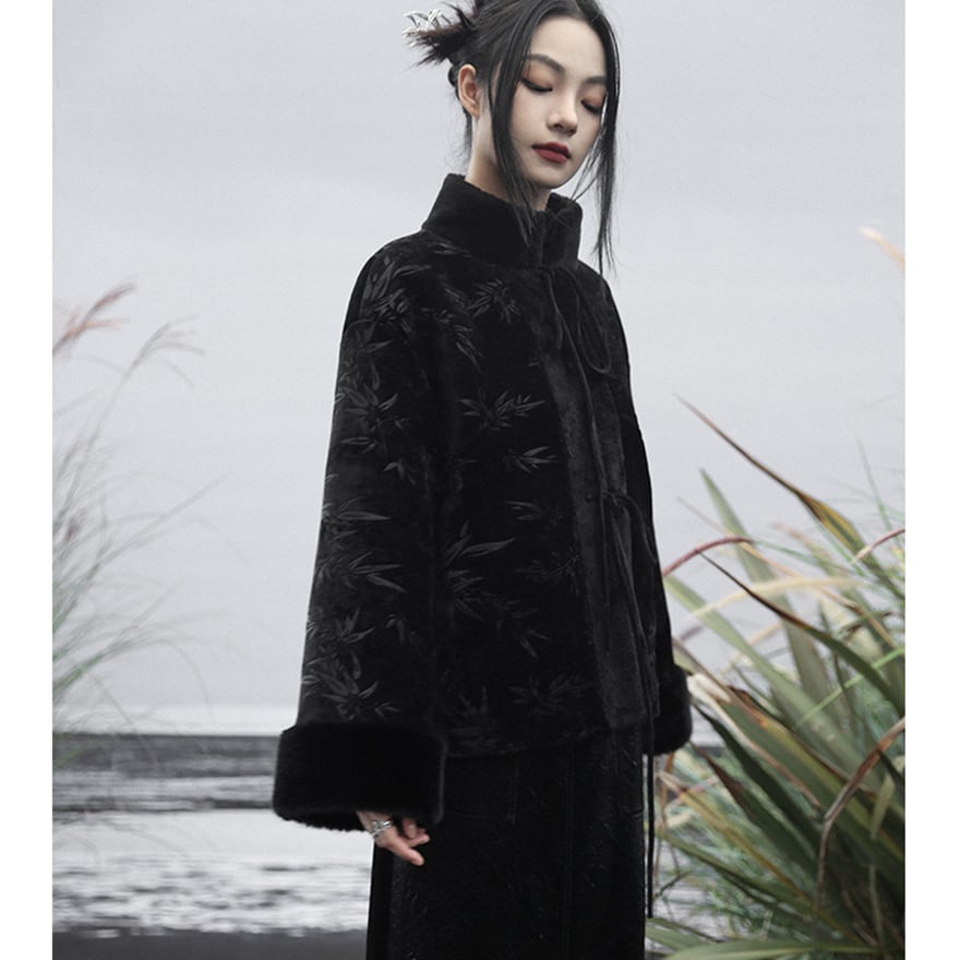 関連キーワード: #中華風 #チャイナ #ジャケット #フェイクファー #竹柄 #レトロ #モード系 #黒コーデ #大青龍肆 #サブカル