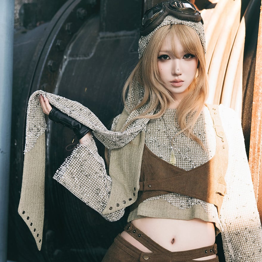 関連キーワード: #スチームパンク #パンク #クロシェ編み #セットアップ #ライトモスカーキ #舞台衣装 #ダメージニット #サブカル #地雷系 #中二病 #コスプレ