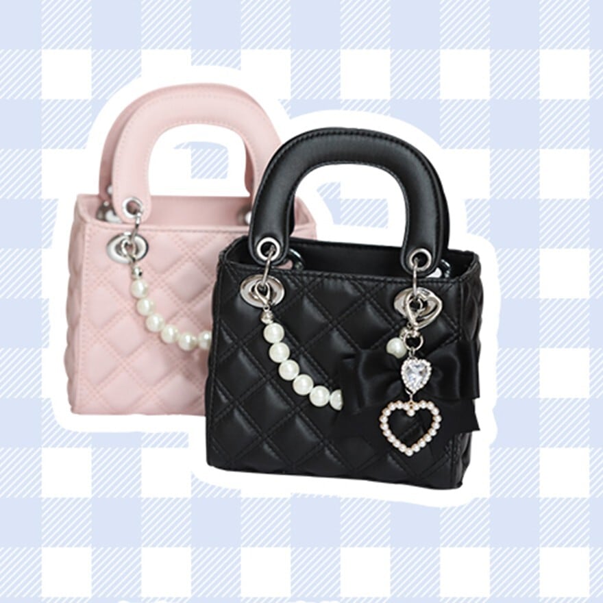 関連キーワード: #ミニバッグ #ハンドバッグ #ショルダーバッグ #キルティング #フェイクレザー #パール #リボン #ハートチャーム #ロリータ #ガーリー #エレガント #可愛い #デート