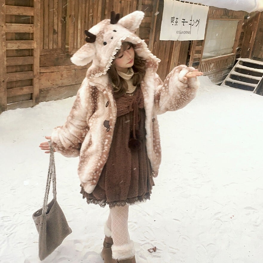 関連キーワード: #コート #ファーコート #アニマル #バンビ #トナカイ #ロリータ #もこもこ #可愛い #防寒 #冬 #クリスマス