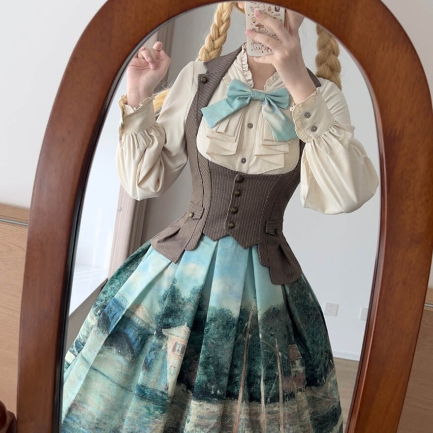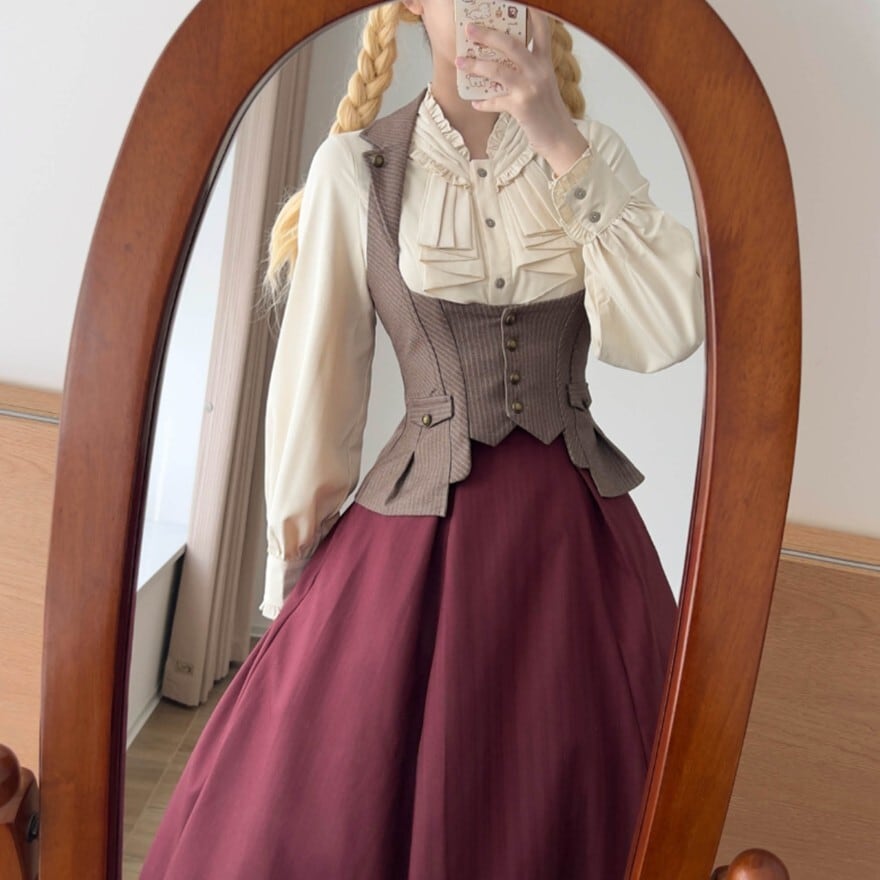 ブラウスやワンピースの上に着用することで、手軽にスタイルアップとクラシカルな雰囲気を楽しめます。