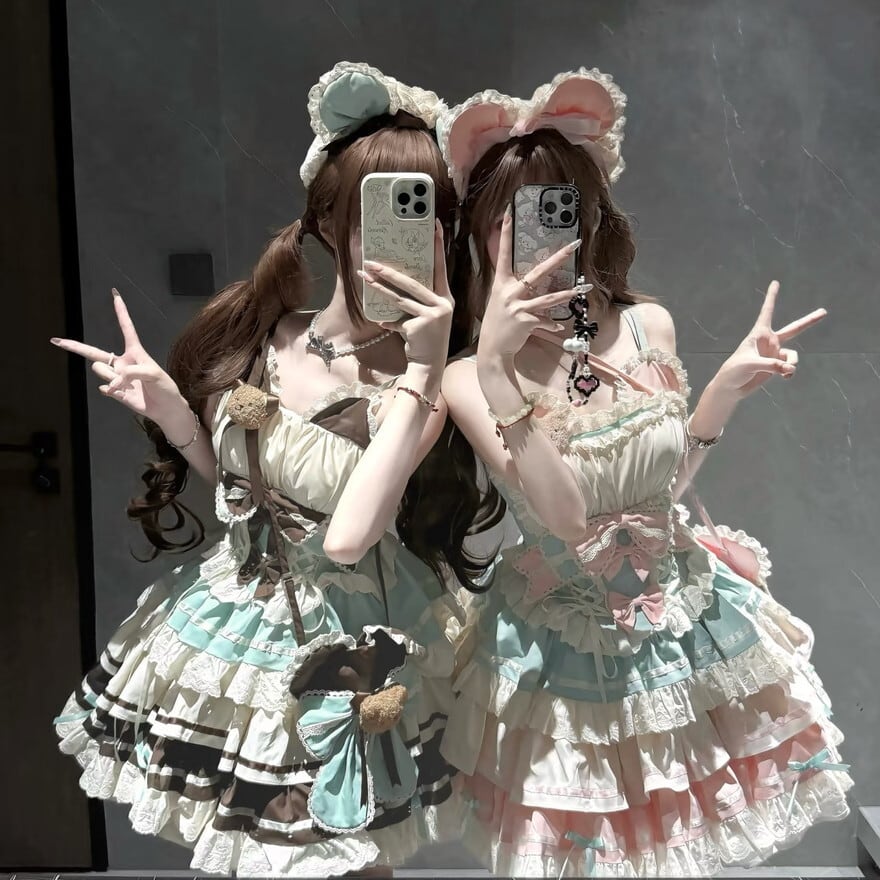 双子コーデ ロリィタ セットアップ ドレス フリル ティアード |甘ロリ ワンピース