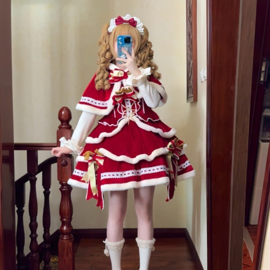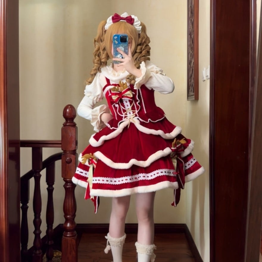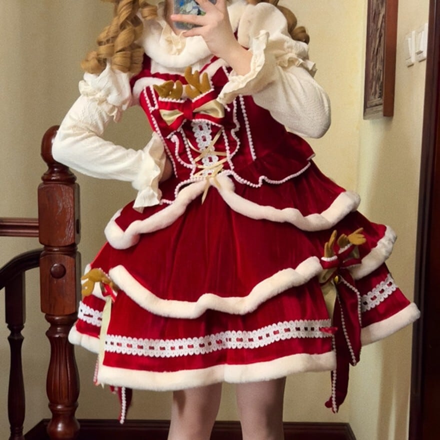 このセット一つで、完璧なクリスマスの主役になれるロリータファッションが完成します。