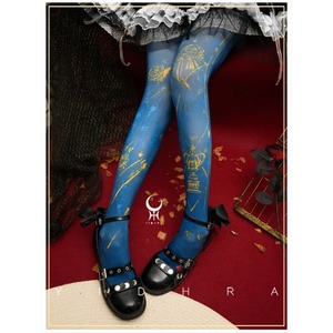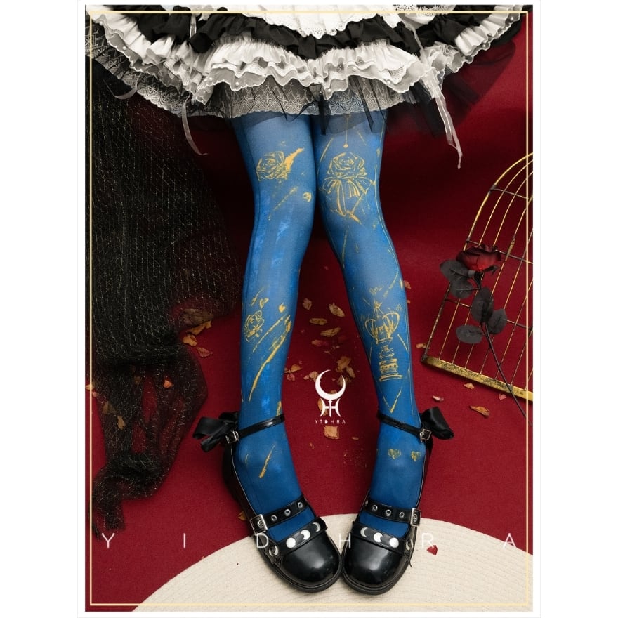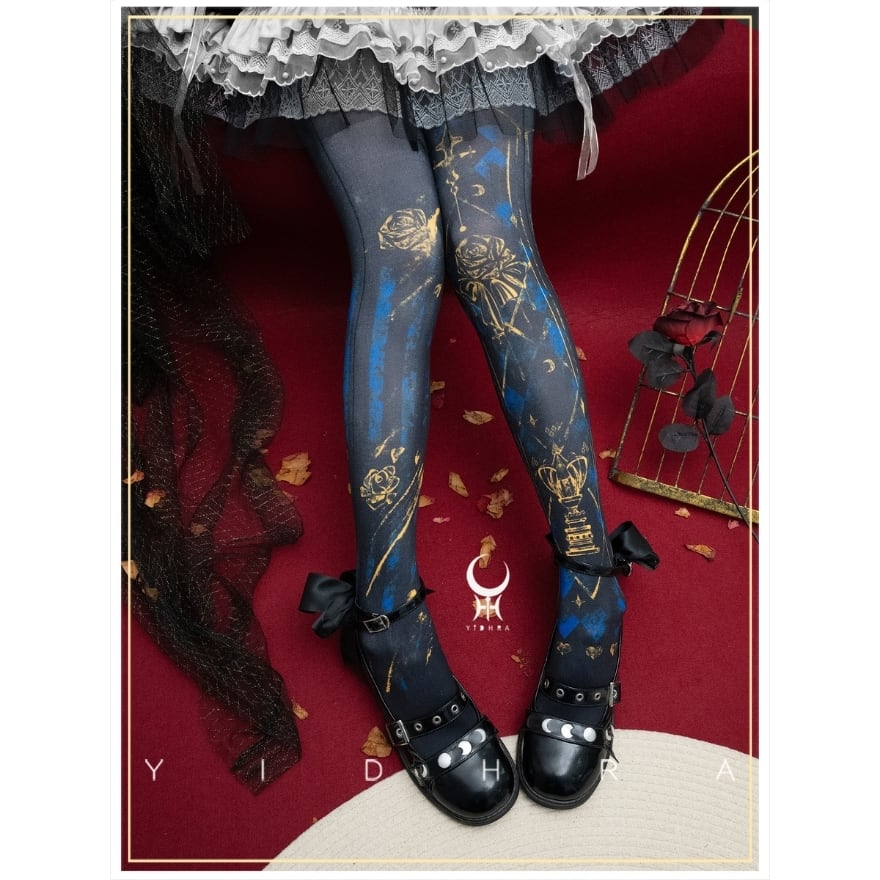 幻想的な薔薇・クラウン・月モチーフを散りばめたデザインタイツ。