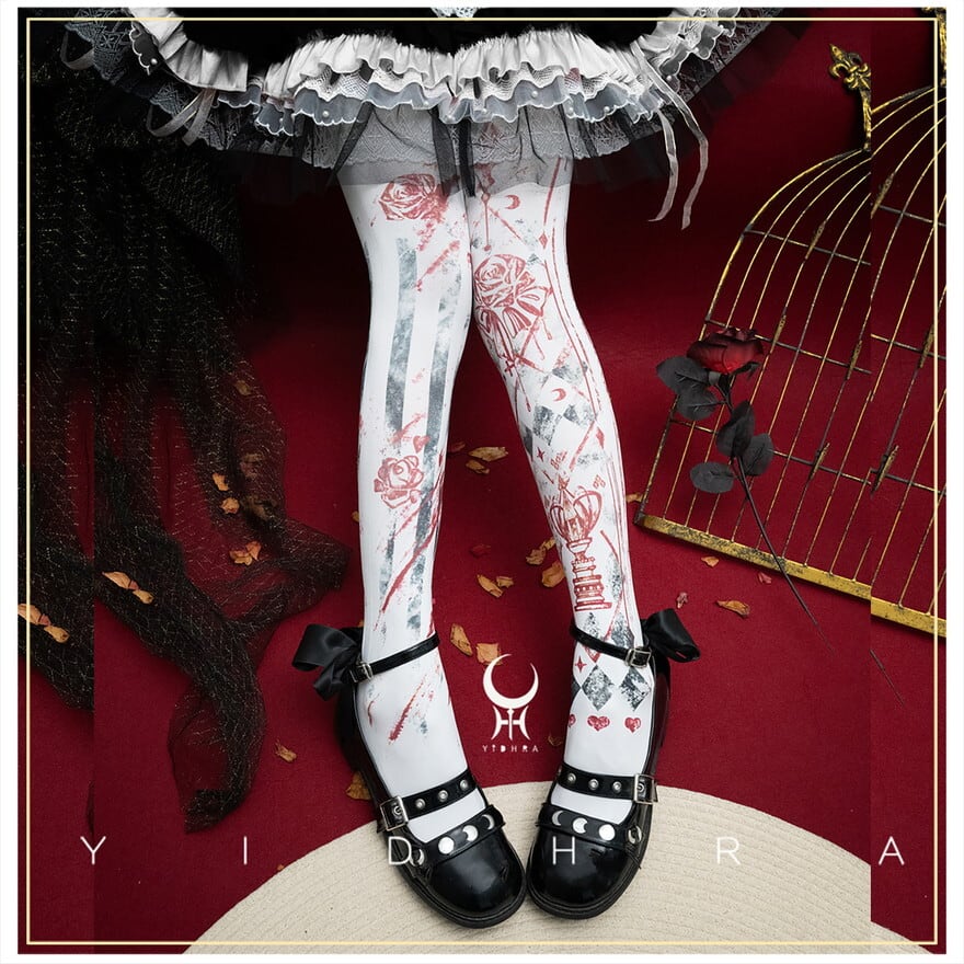 ゴスロリ プリント柄 ソックス タイツ|ゴシックロリータ・病みかわ・舞台衣装対応(全4色)