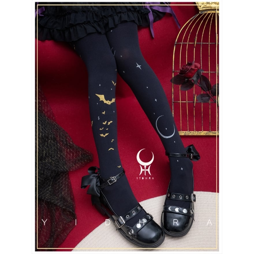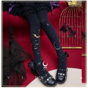 ゴスロリ 月と蝙蝠モチーフ パンスト|黒タイツ・ゴスロリ小物