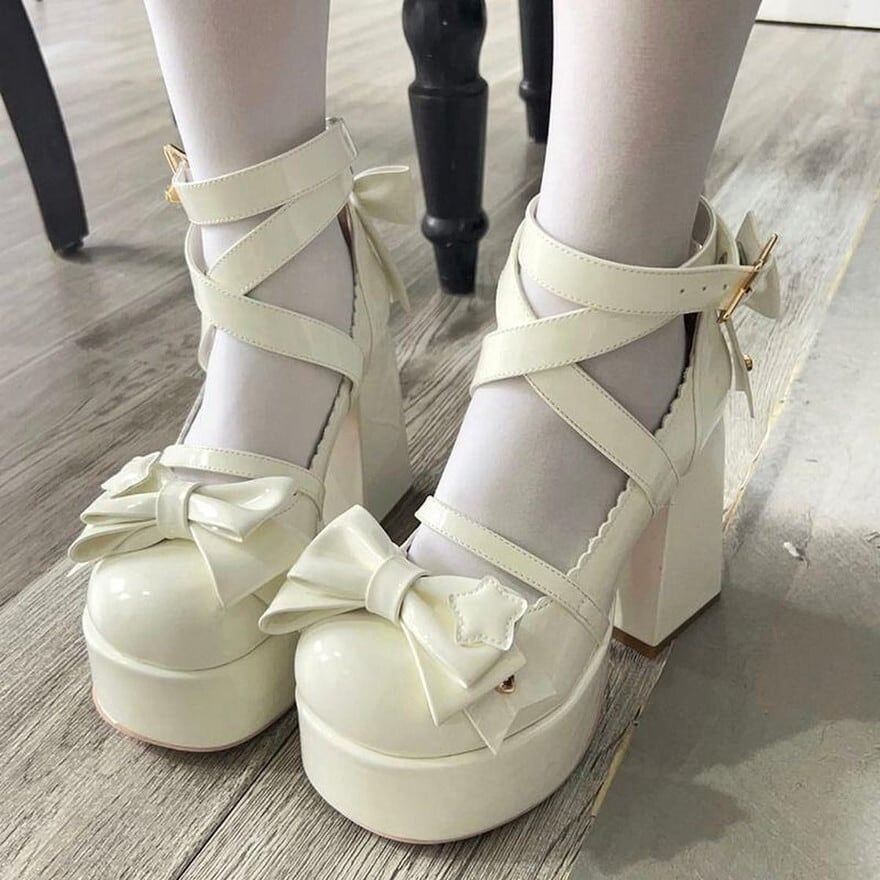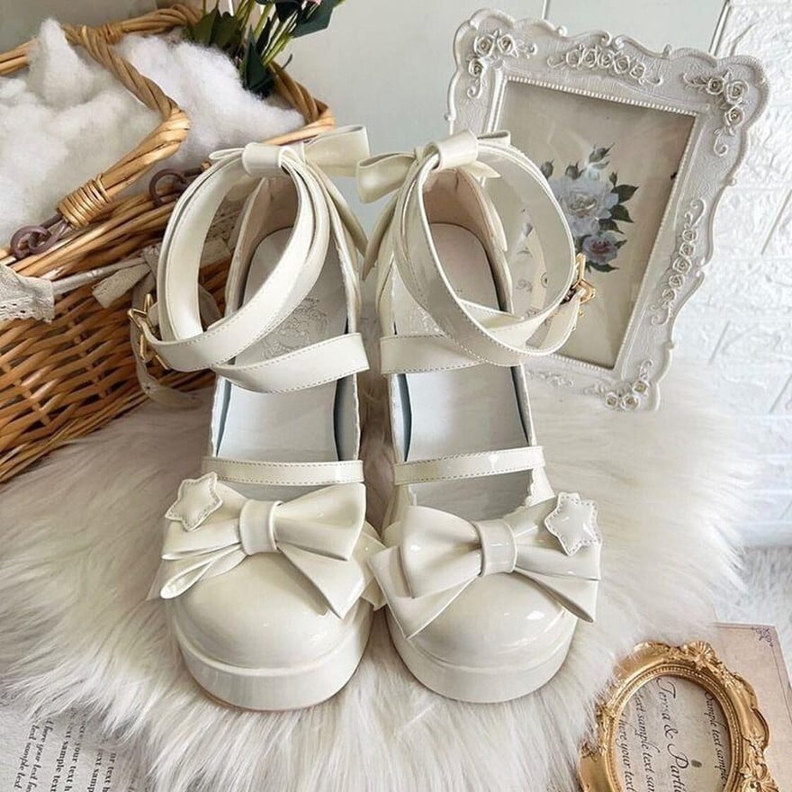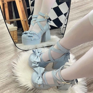 関連キーワード: #ロリータ靴 #厚底パンプス #チャンキーヒール #ビッグリボン #星モチーフ #スターバックル #ゆめかわ #甘ロリ #量産型 #推し活 #4色展開