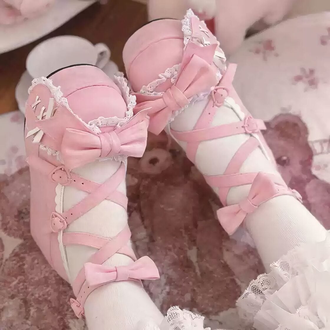 つま先部分には立体感のあるうさぎ耳デザインをあしらい、リボンとレースを重ねることで、甘さと可憐さを兼ね備えた一足に仕上げました。