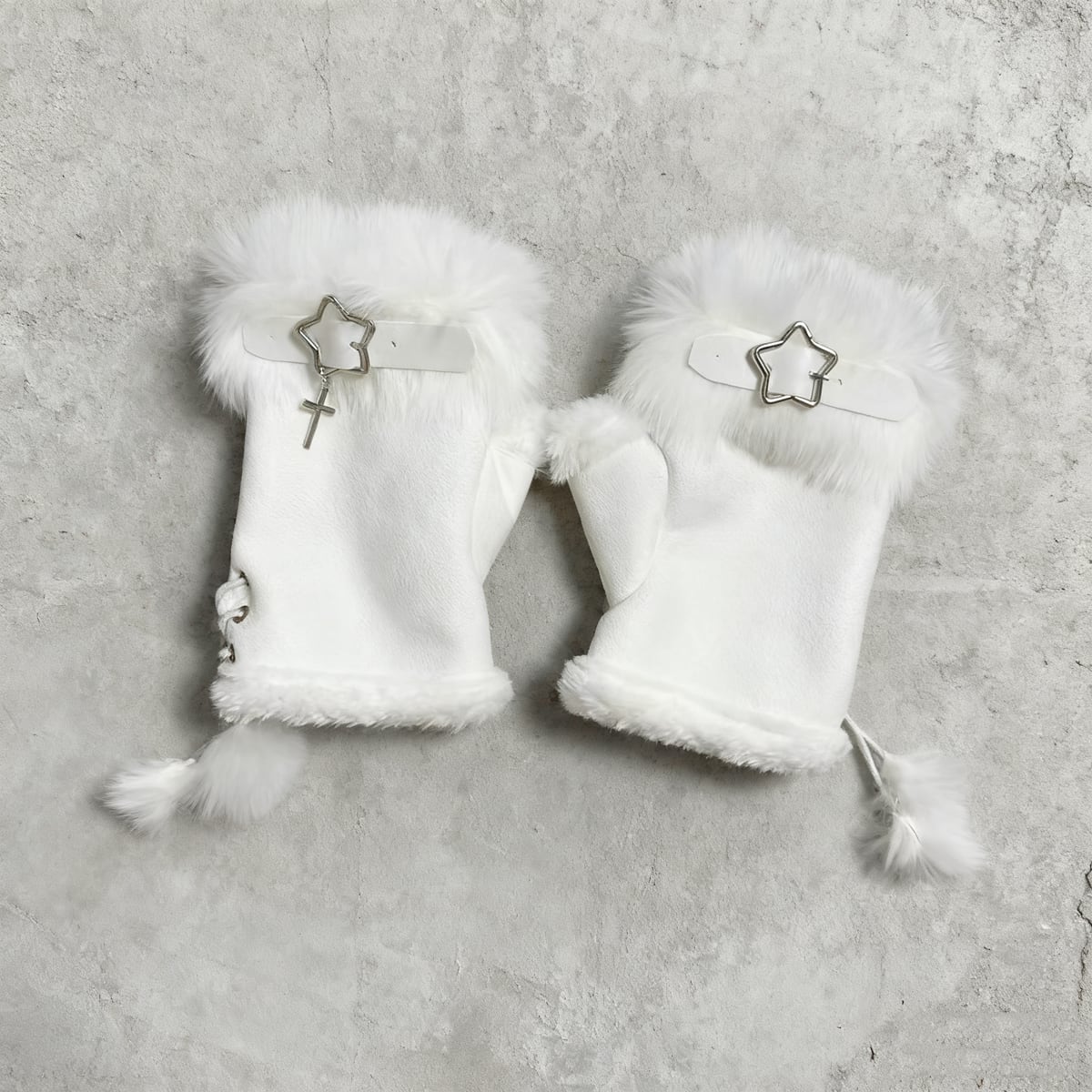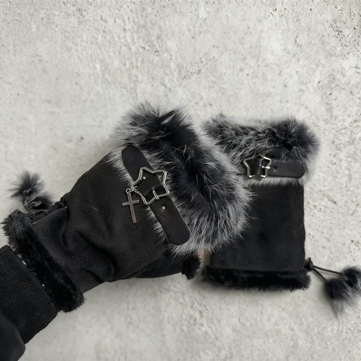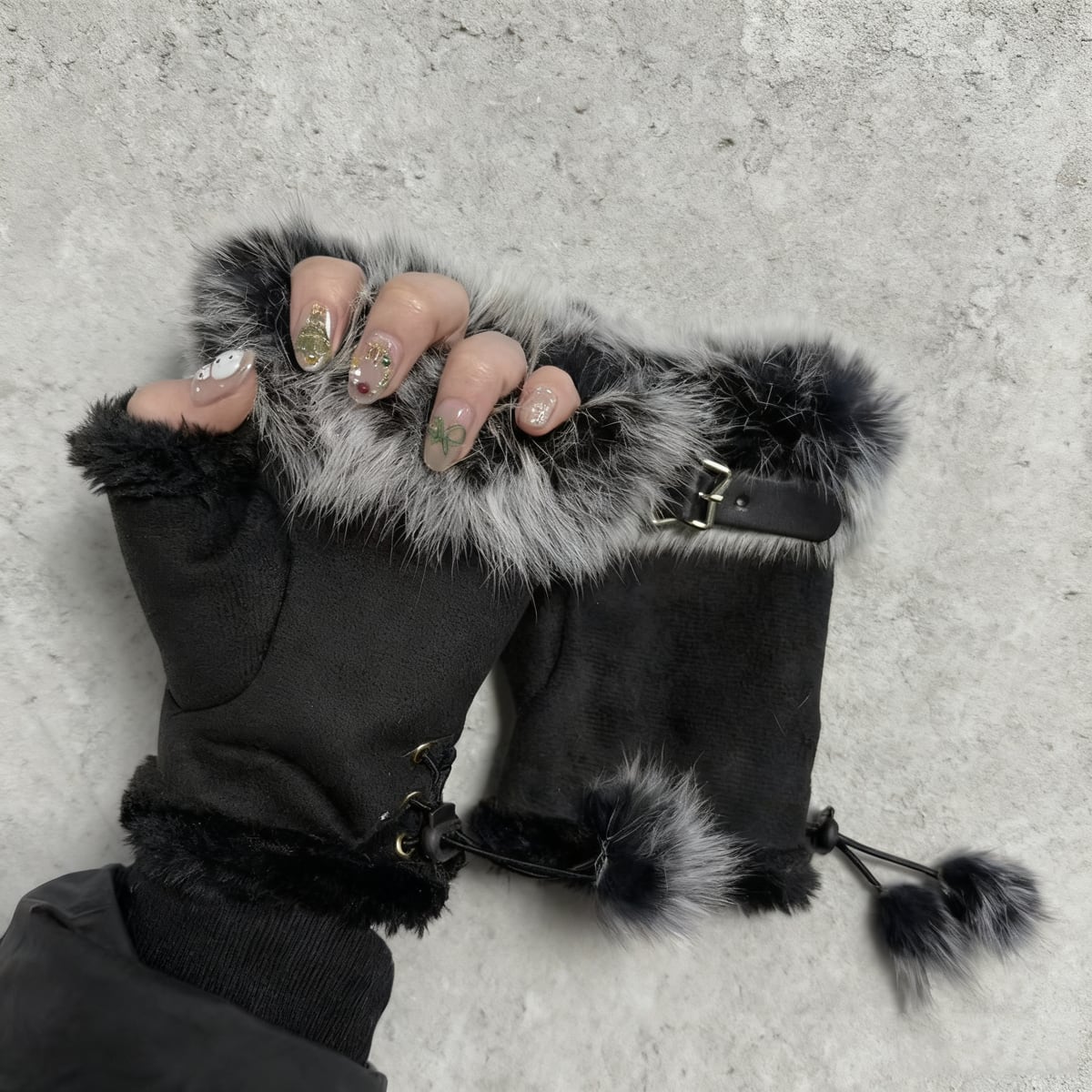 冬のゴスロリコーデを完成させる、ファー付きアームウォーマーです。