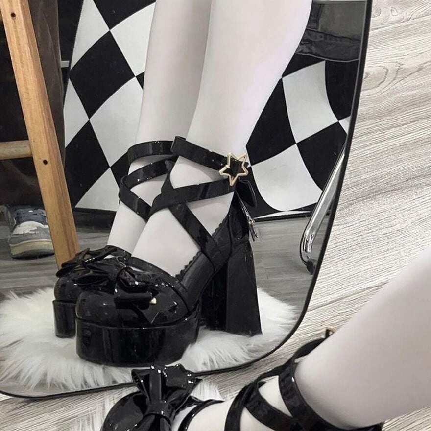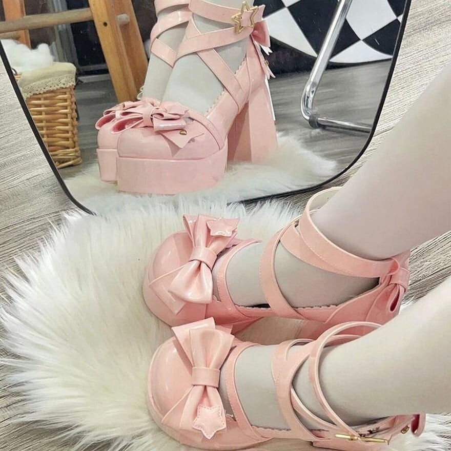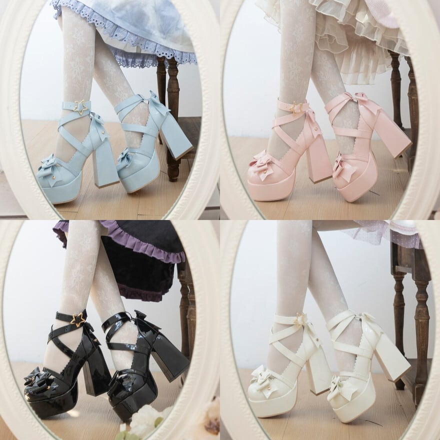 関連キーワード: #ロリータ靴 #厚底パンプス #チャンキーヒール #ビッグリボン #星モチーフ #スターバックル #ゆめかわ #甘ロリ #量産型 #推し活 #4色展開