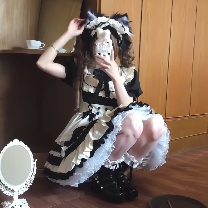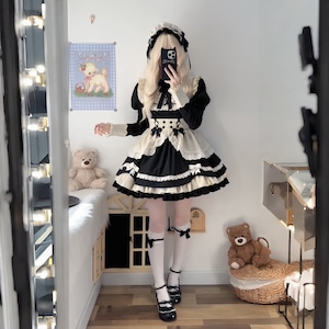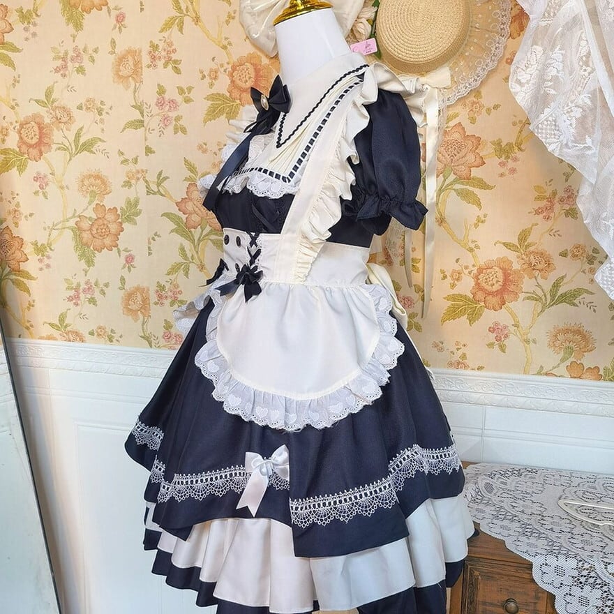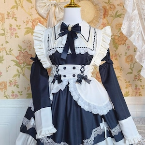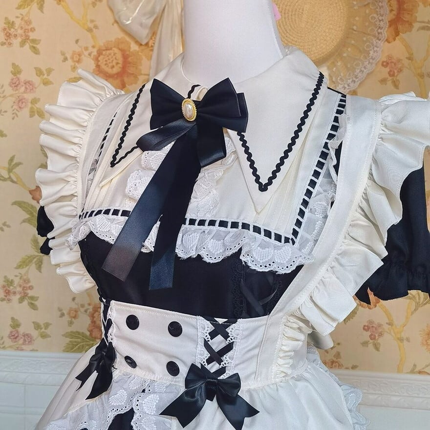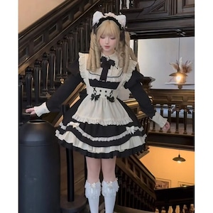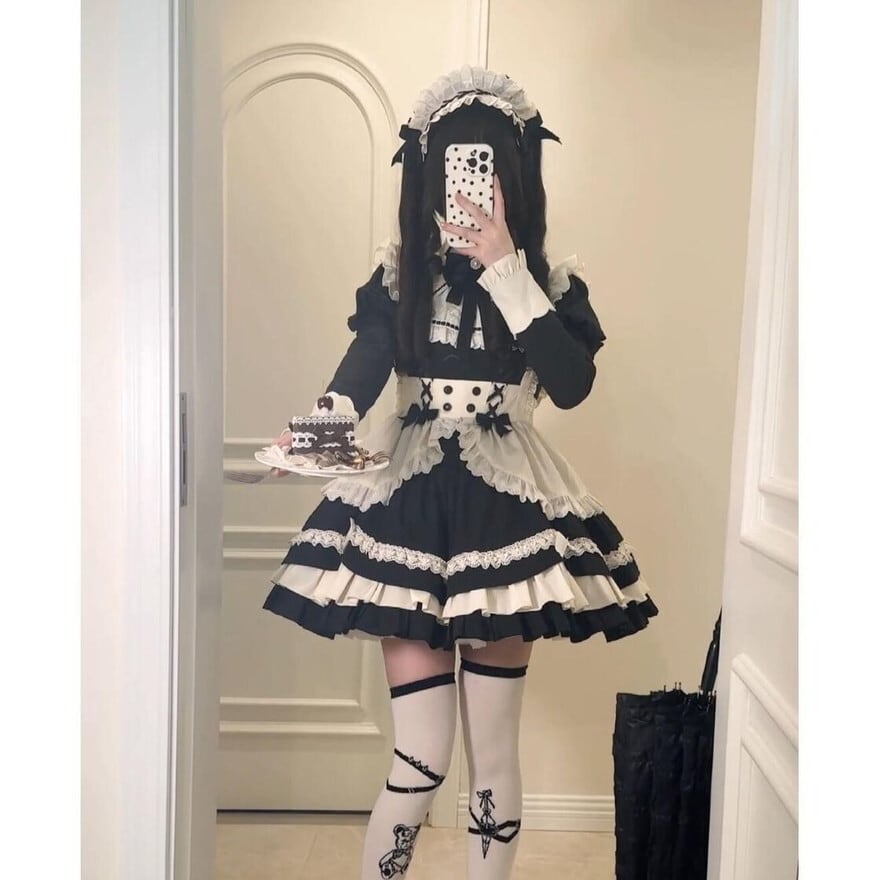 関連キーワード: #メイド服 #クラシカル #ロリータ #ゴスロリ #フリル #レース #ティアードスカート #コスチューム #コスプレ #イベント衣装 #黒白 #バイカラー