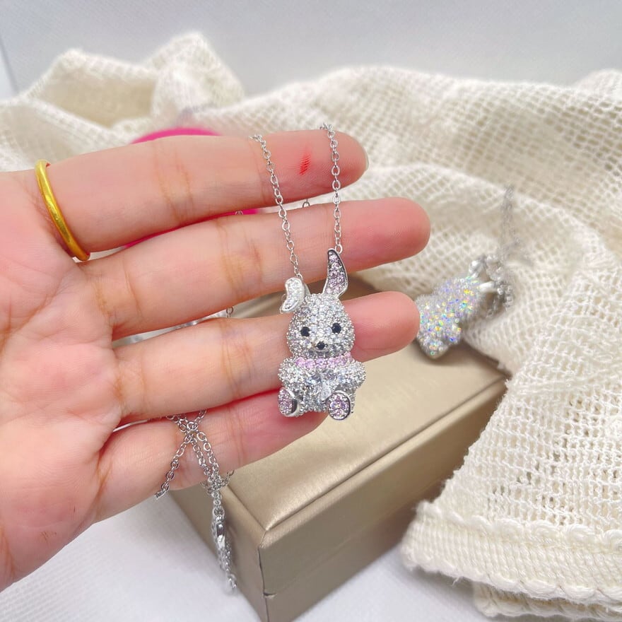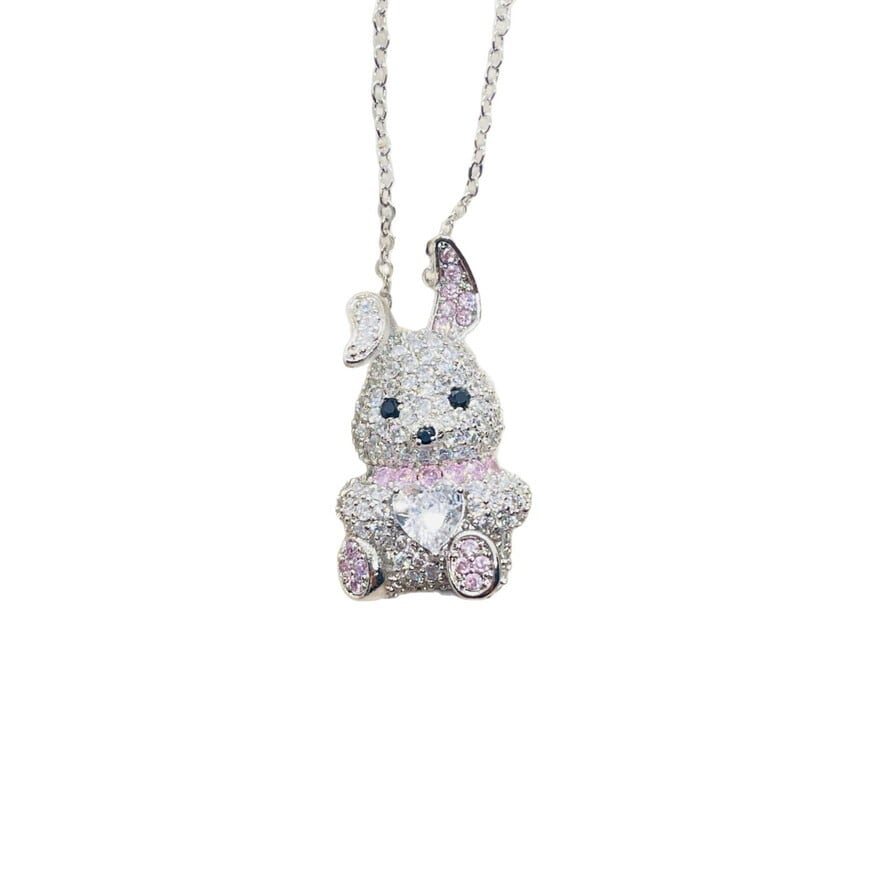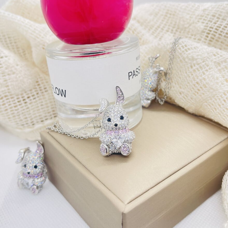 地雷系・量産型向け キラキラうさぎマスコットDIYキット|ネックレス&ブレスレット用パーツ3点セット|かわいいうさぎチャーム フルストーンデザイン