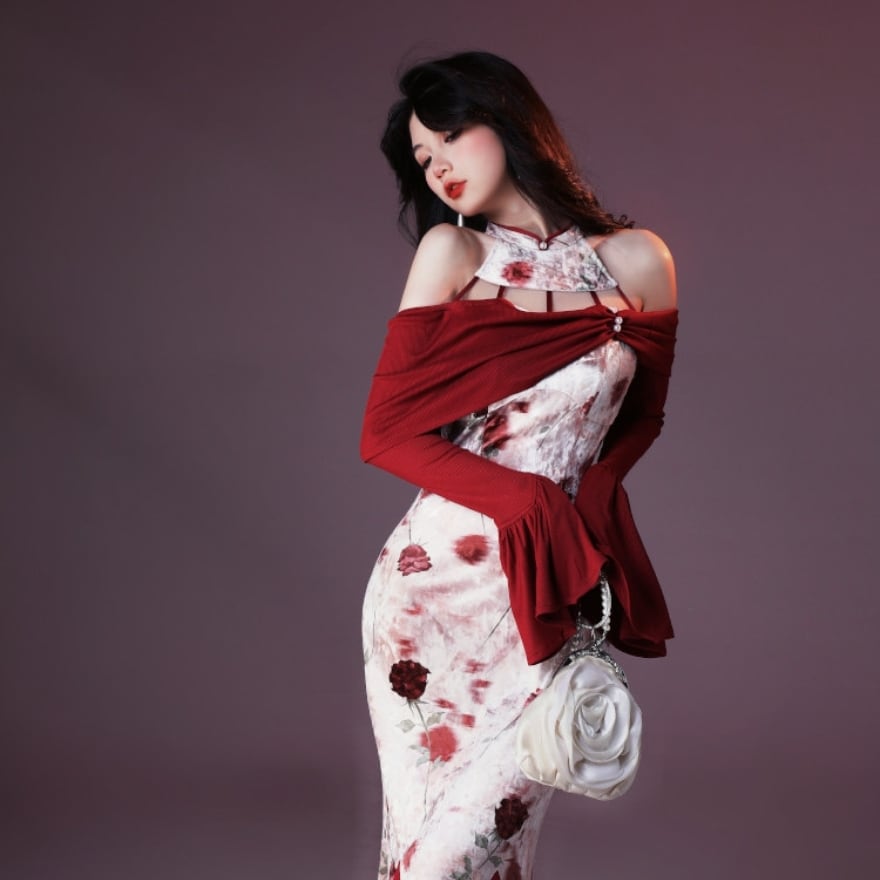 ・中華風ローズ柄プリントで、甘さを抑えた大人ゴシックな印象
