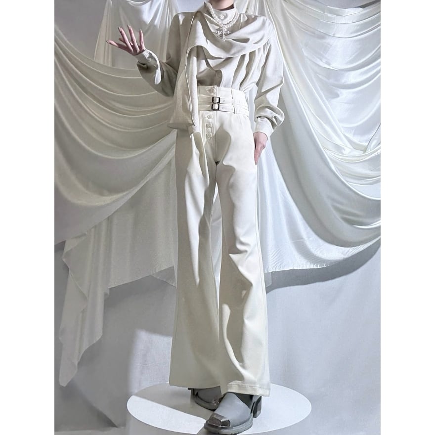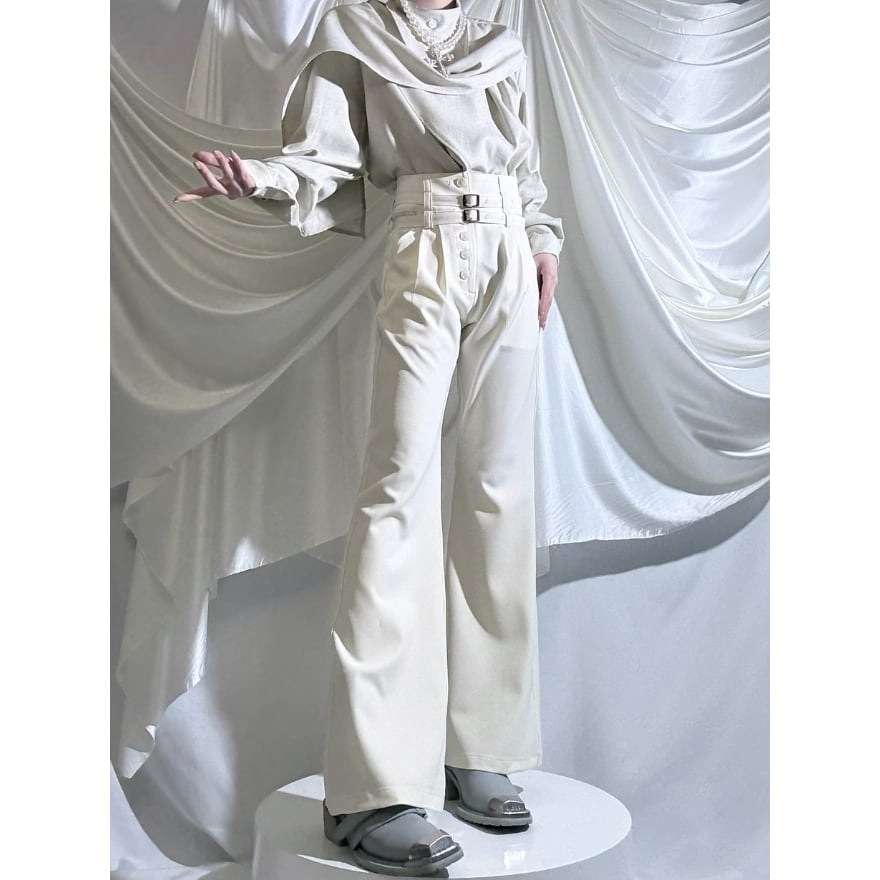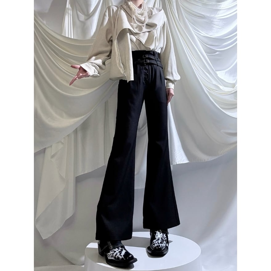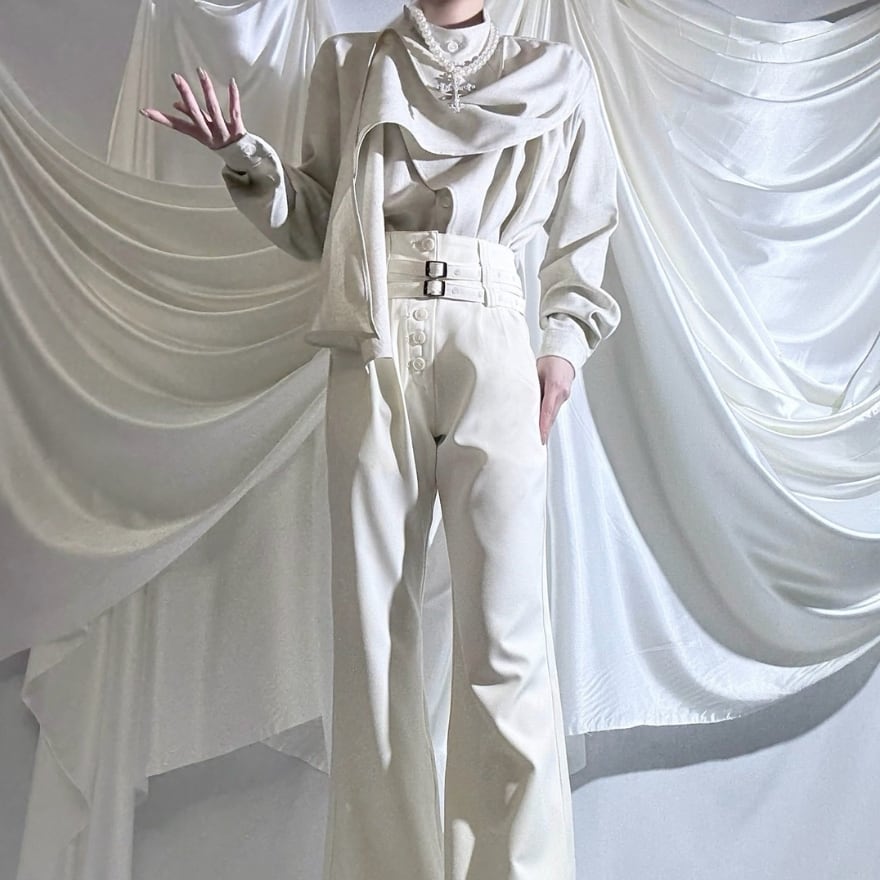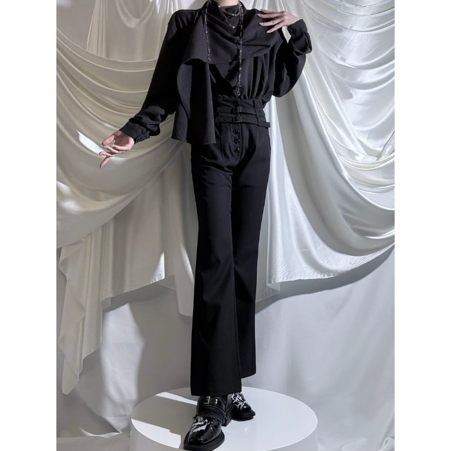 重ね布のような非対称ドレープが印象的な、大人向けゴシック調ブラウス。