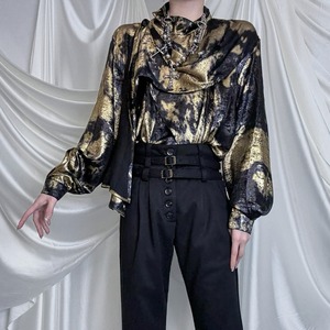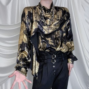 大人ゴシック 箔調ドレープブラウス 非対称デザイン・存在感トップス