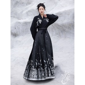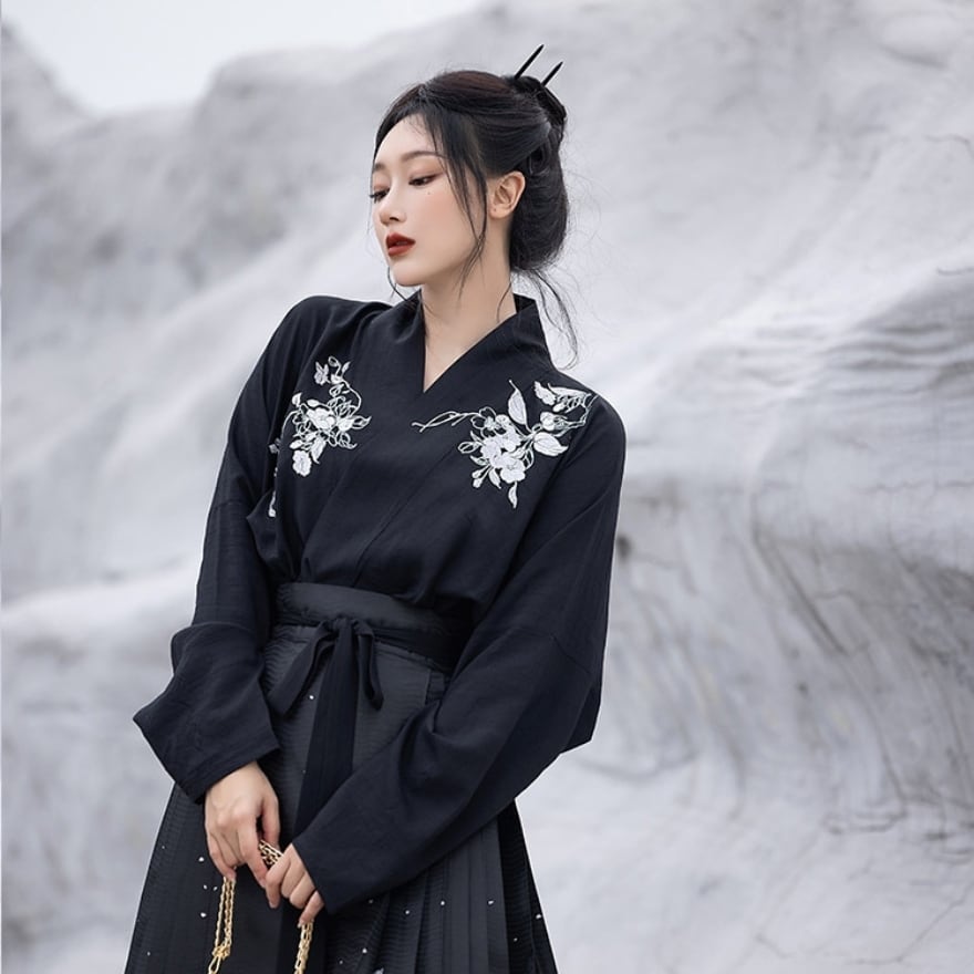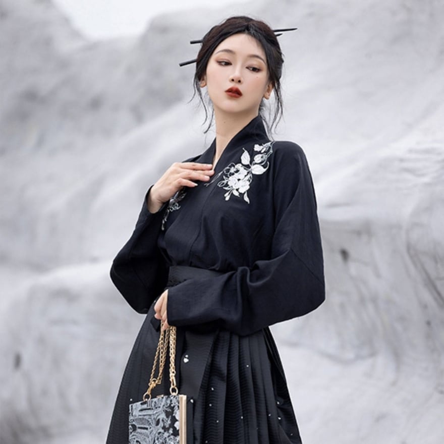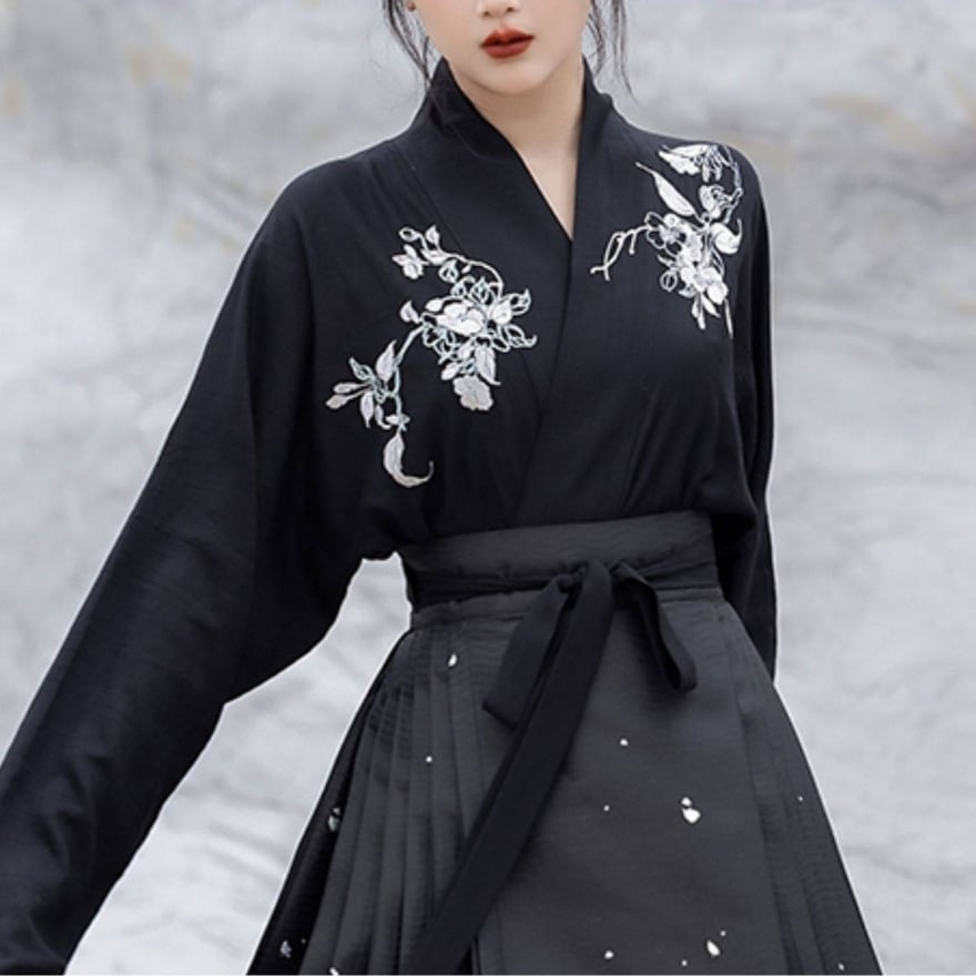 花と蝶の繊細な刺繍が裾を彩る中華ゴシックロングスカート。