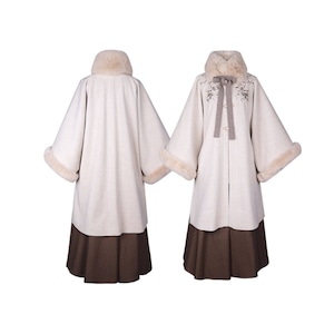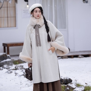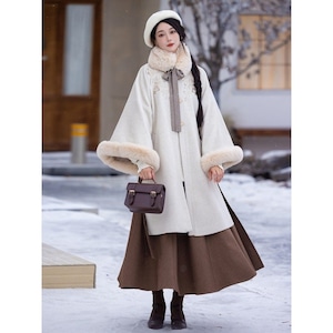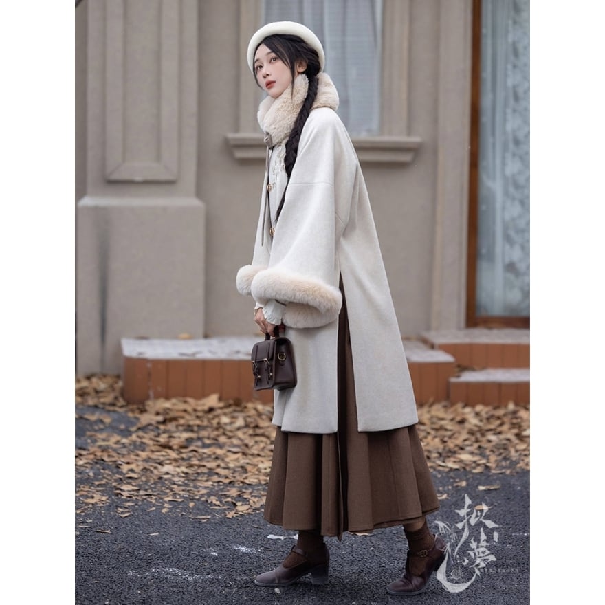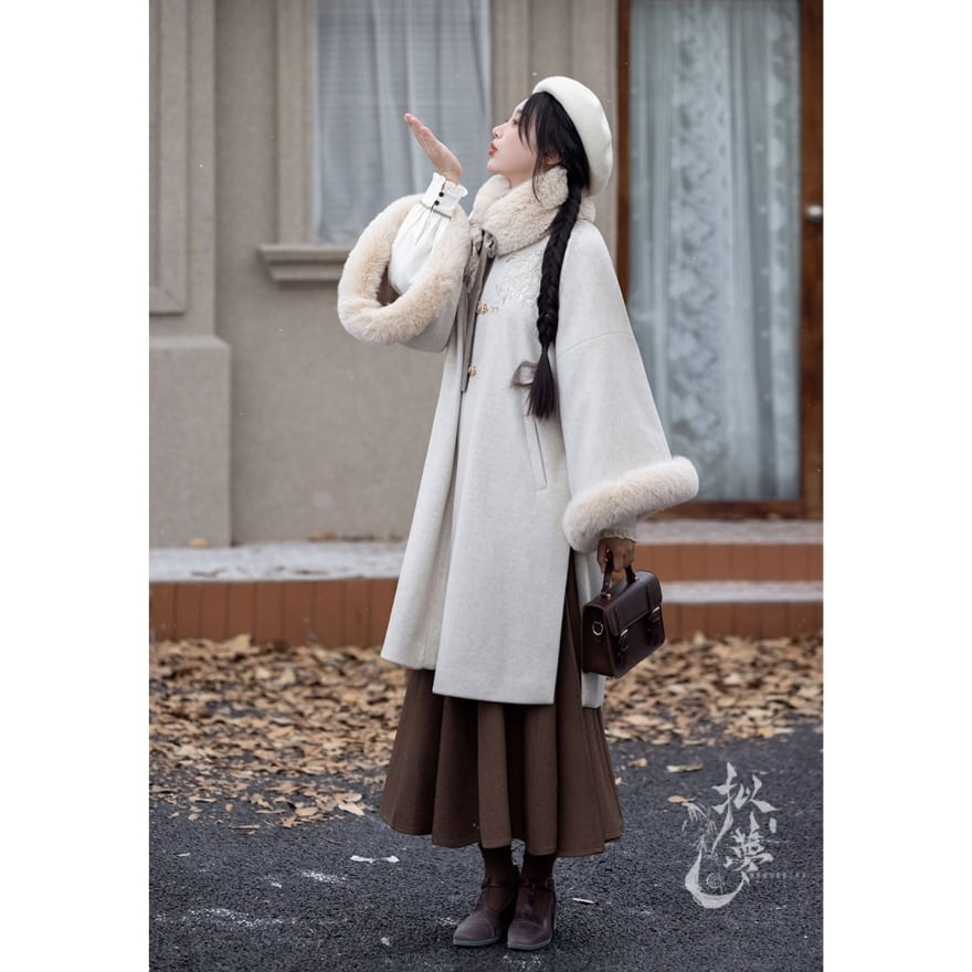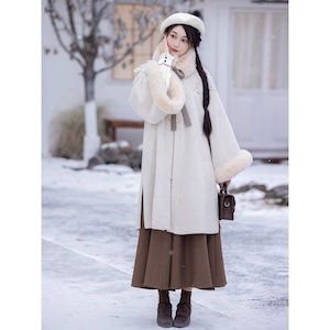刺繍コート、プリーツスカート、フェイクファー付け襟で中華ロリータの世界観が完成。単品使いも可能。