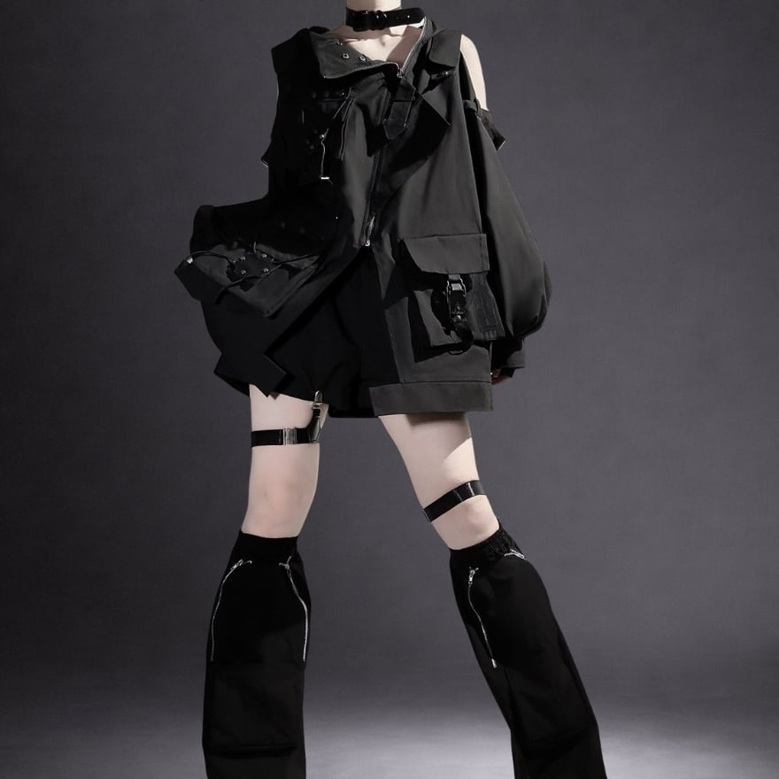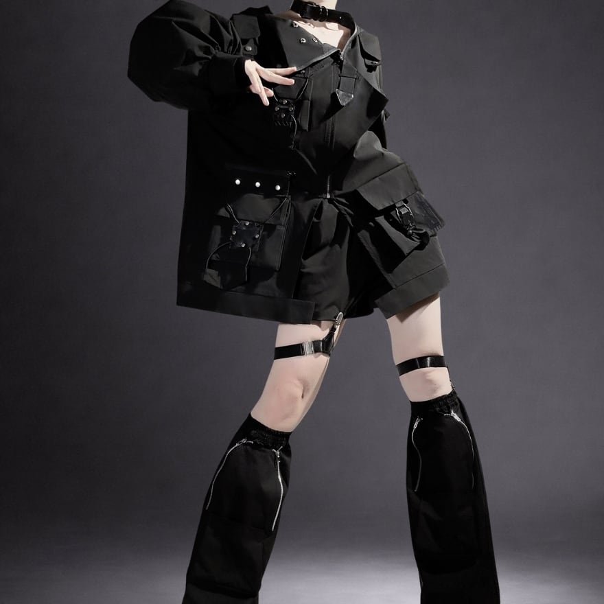 立体ポケットとギミック構造が存在感を放ち、ライブ・撮影・ストリートで世界観を完成させる一着。