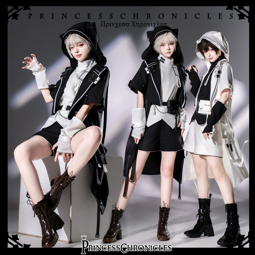 皇子系×機能美 白猫モチーフ ハイネック白シャツ ユニセックス対応 princessChronicle 男装コーデ