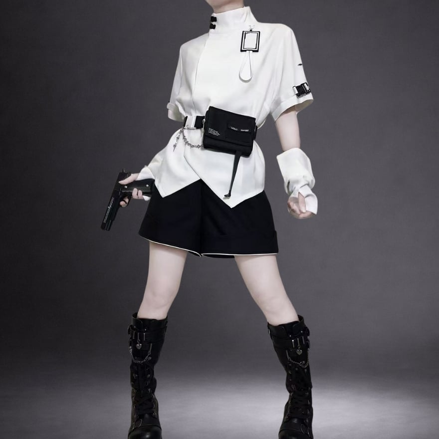 多層ポケットとギミック構造が存在感を放ち、ライブ・撮影・ストリートで即座に世界観を完成させる一着。