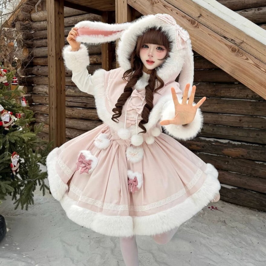 冬の甘かわヒロインになれる、うさみみケープ×ふわもこドレスの特別セット。