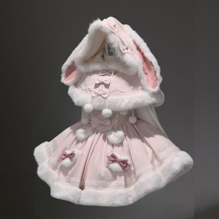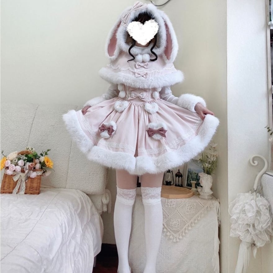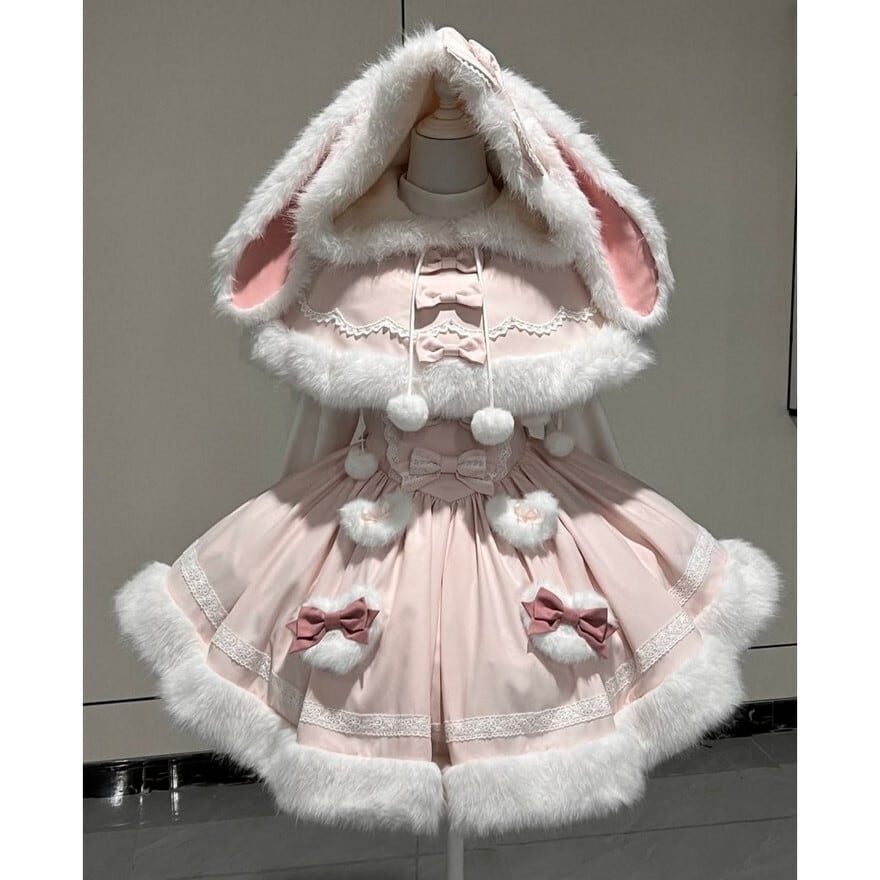 ふわもこ ウサギ耳 ケープ付き2点セット|甘かわ Aライン 地雷系・ゆめかわ