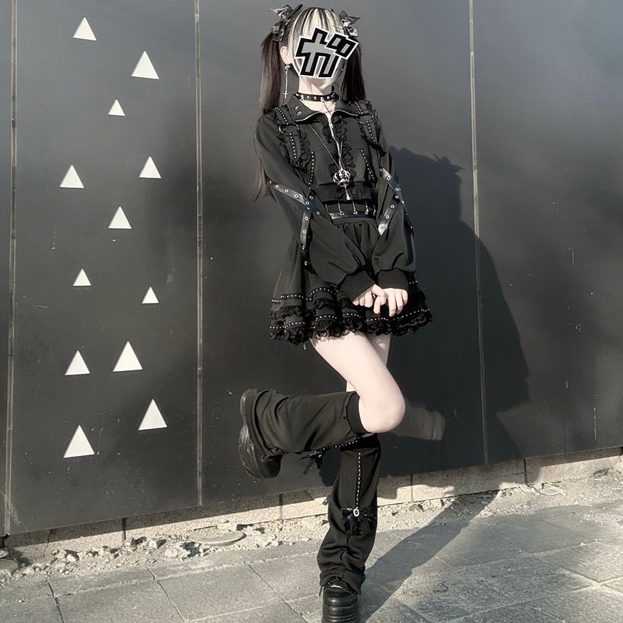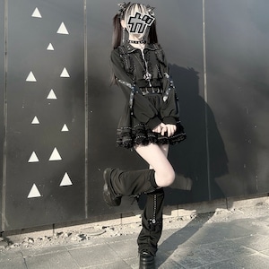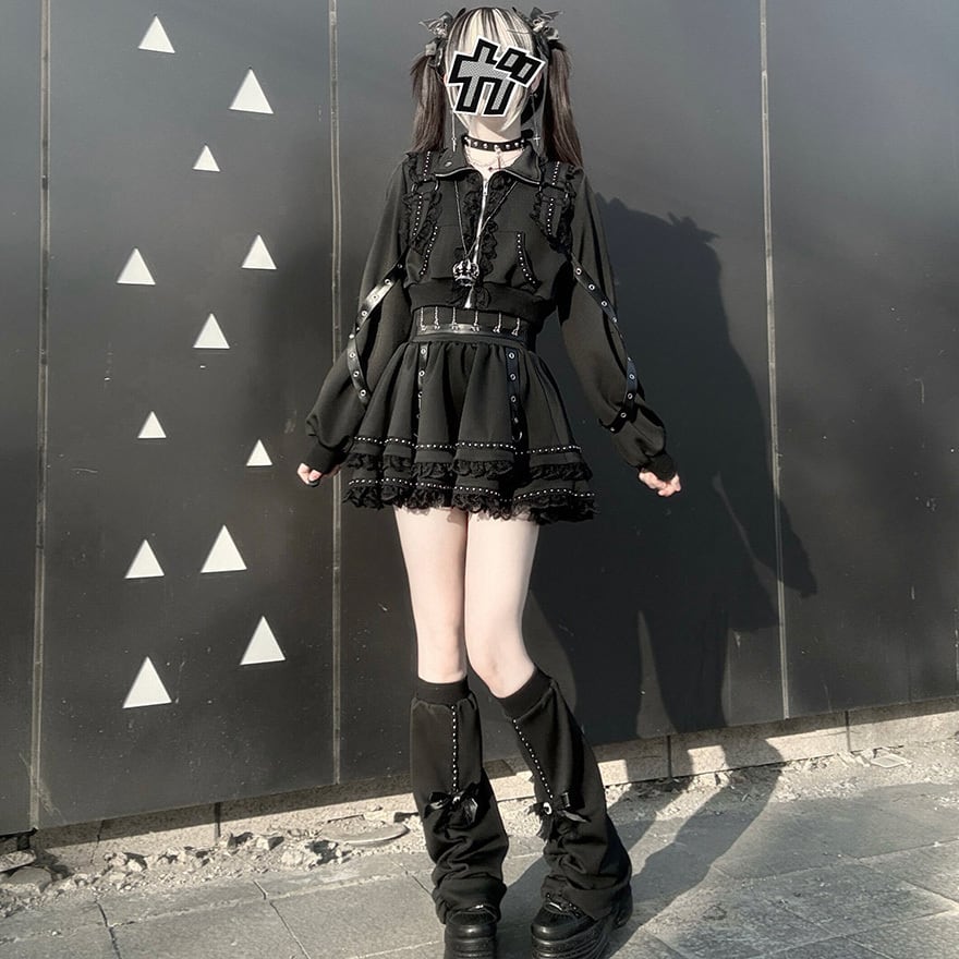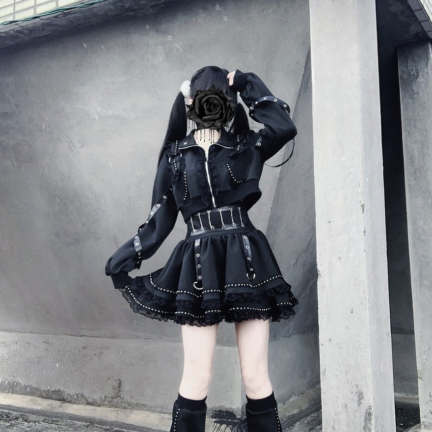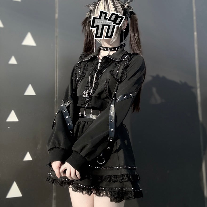 関連キーワード: #サブカル系 #地雷系 #パンクゴシック #セットアップ #ダークファッション #モノトーン #フリル #スタッズ #病みかわいい
