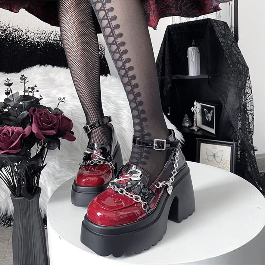 ゴスロリ パンプス 厚底靴 Love Lock 地雷系/量産型 サブカル系ファッション