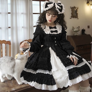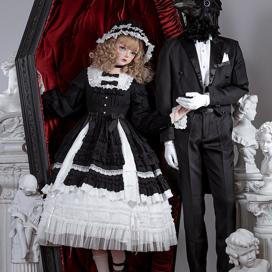 存在感のあるボンネット付きで、一着で理想のドールスタイルが完成します。法人運営の徹底した検品体制で初心者も安心。病み可愛い甘ロリとシックな黒から選べる、心ときめく一着です。