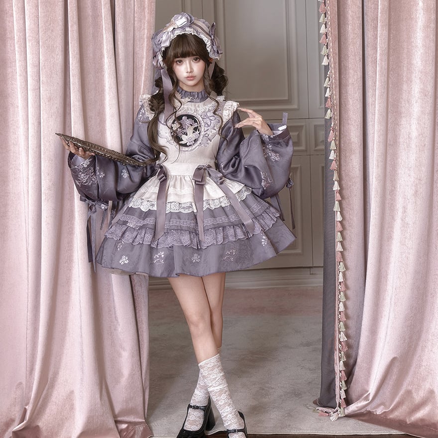 丸窓 刺繍 モチーフ 和ゴシック ロリィタ ヘッドドレス 中華風メイド服【予約商品】