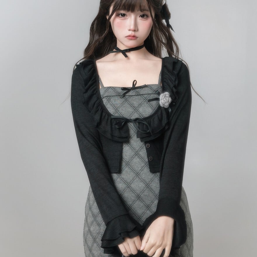 関連キーワード: #ロリータ #クラロリ #セットアップ #ジャンパースカート #ジャケット #モノトーン #チェック柄 #エレガント #シック #可愛い