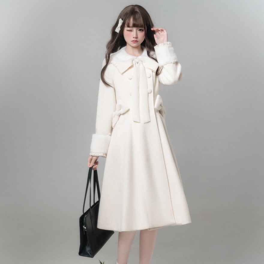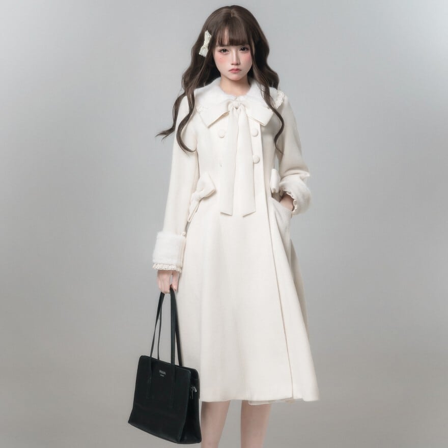 ボリューミーなファーと贅沢なリボン使いが、まるで雪の中の妖精のような可憐さを演出。厚着になりがちな冬でも、「世界で一番可愛い私」でいられる特別な一着です。