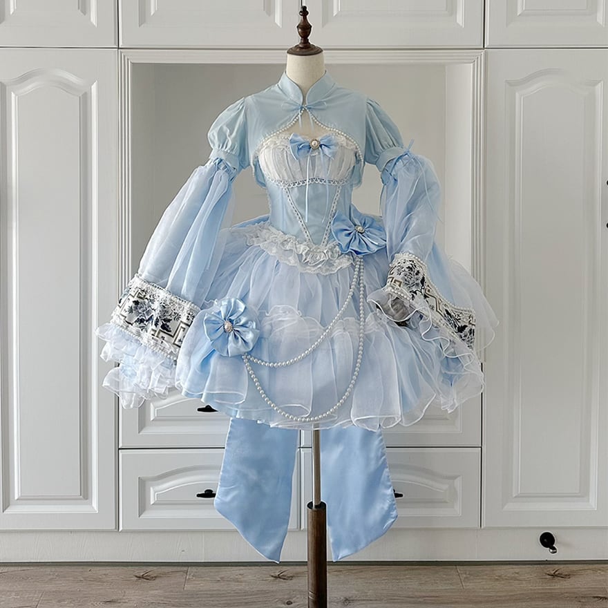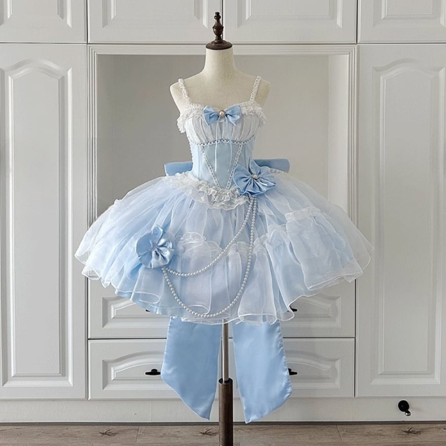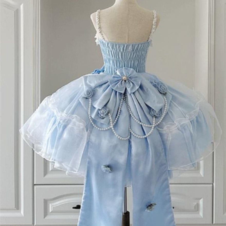 水色の幻想 パールとシフォンのロリィタドレス|大人可愛いボリュームフリルと華奢見えコルセットデザイン