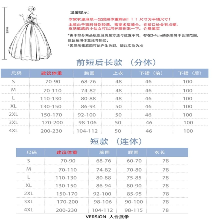 ◆サイズ(cm)【前短後長・分体タイプ】