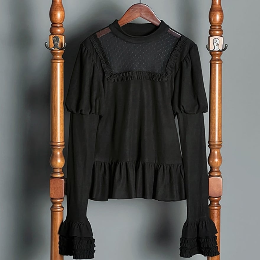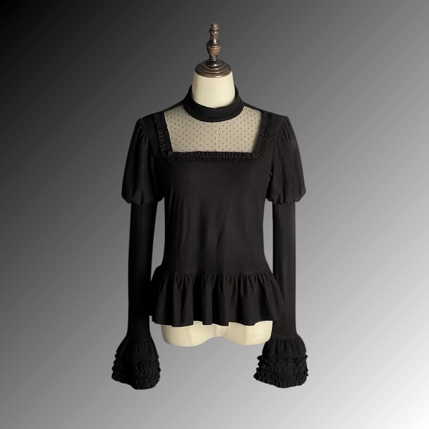 ゴスロリ ブラウス 長袖 Alice Girl 魔女シリーズ シアードット切替 インナーブラウス