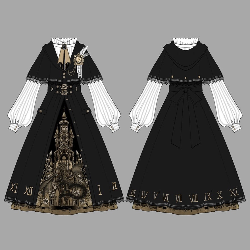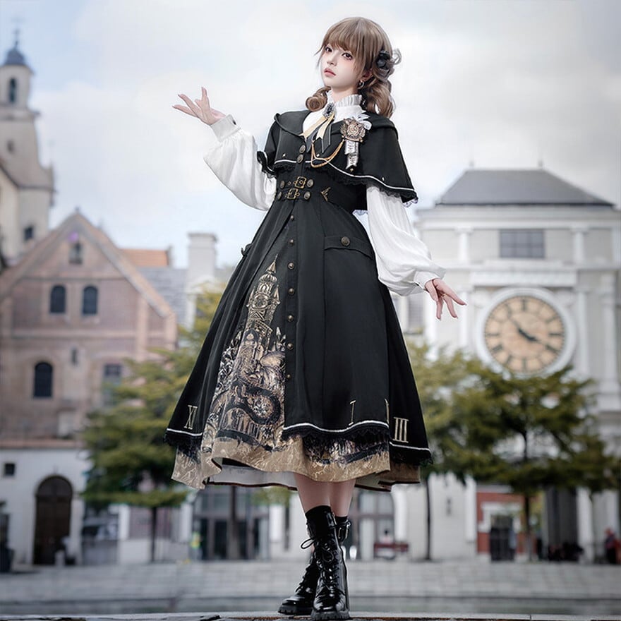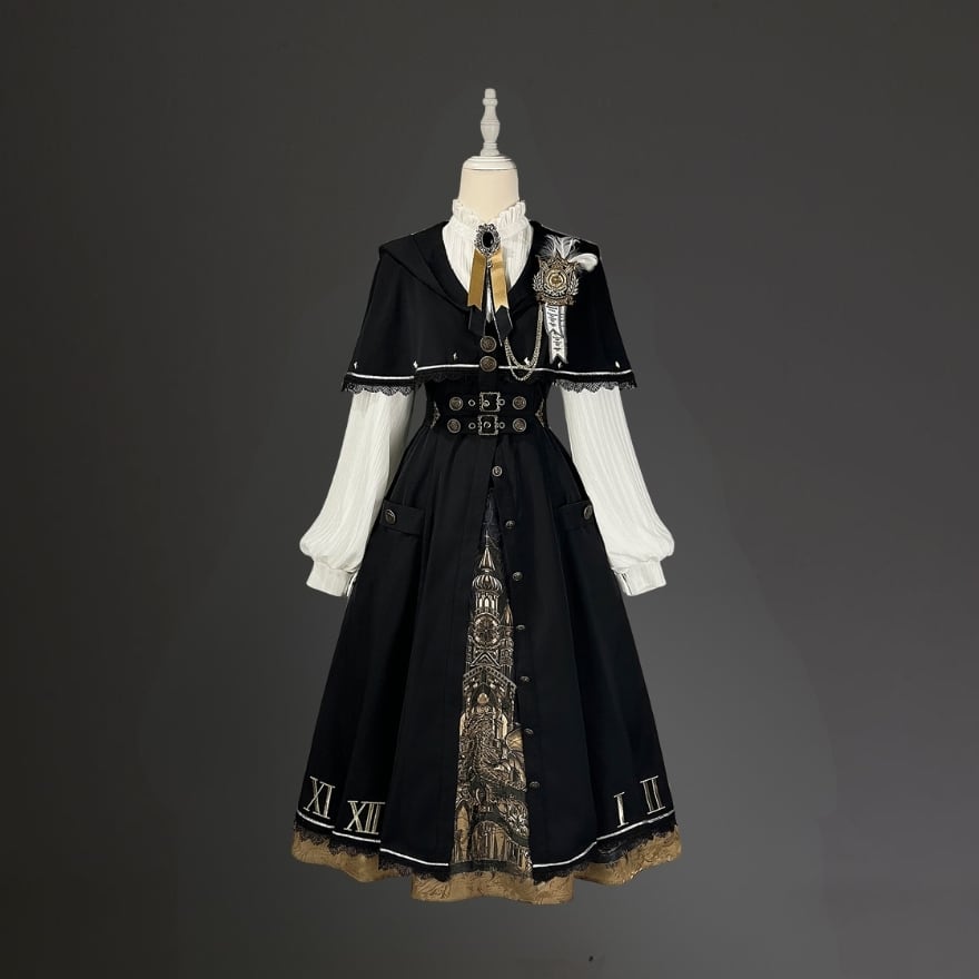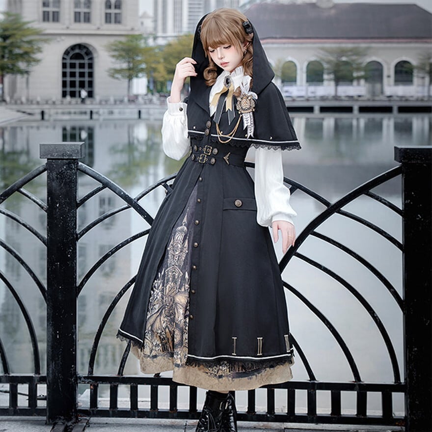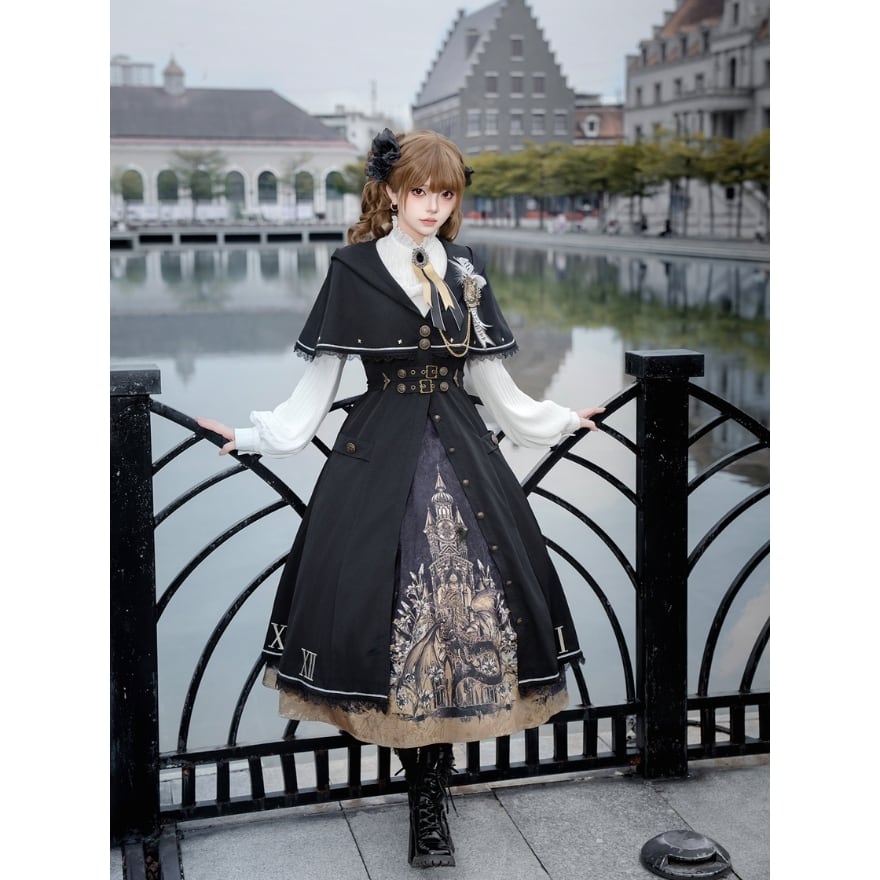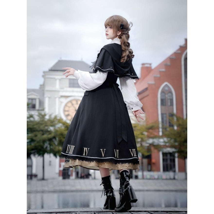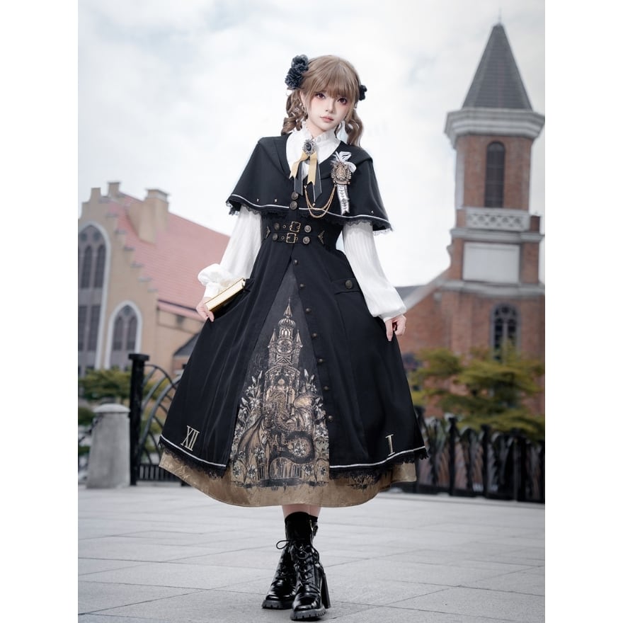 修道院と時計塔を想起させる重厚な世界観を落とし込んだゴシックロリータセットアップ。