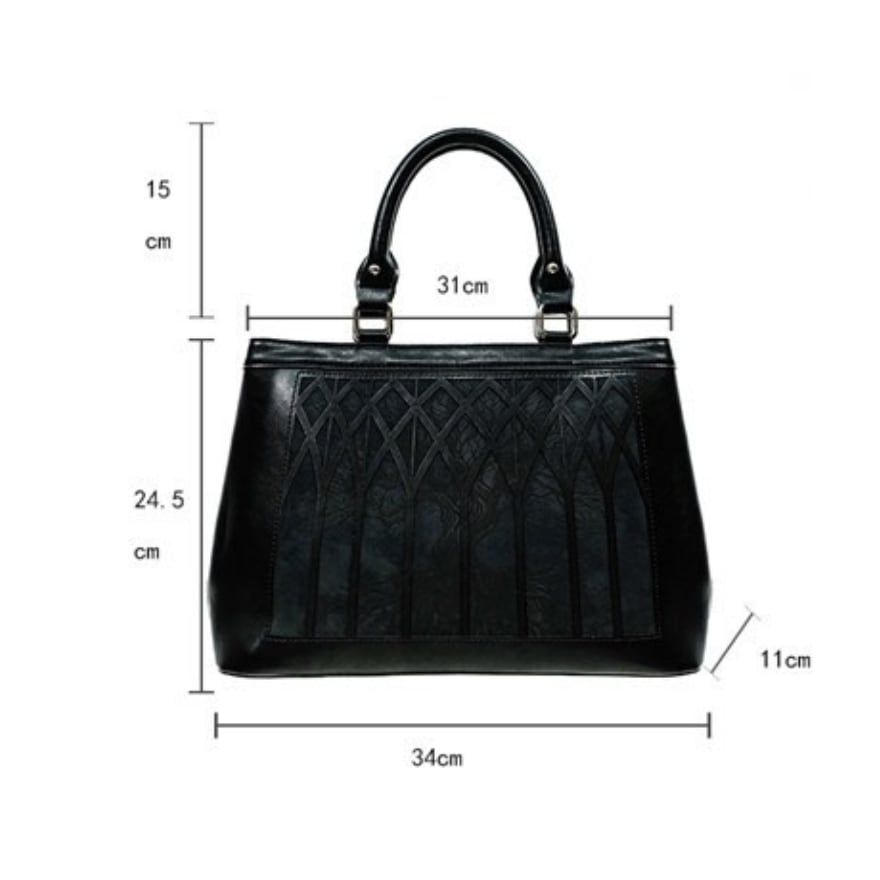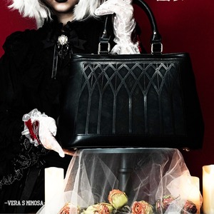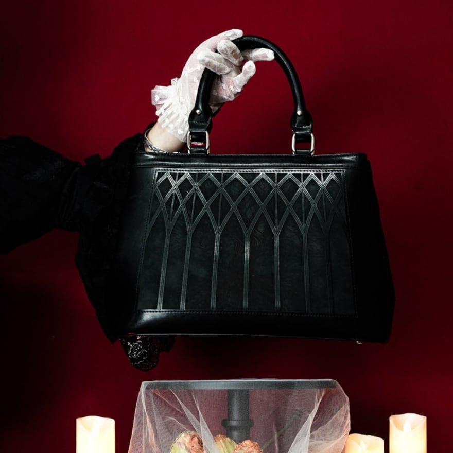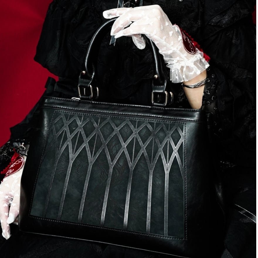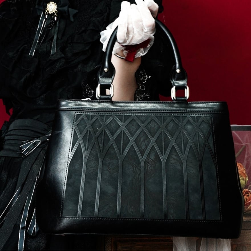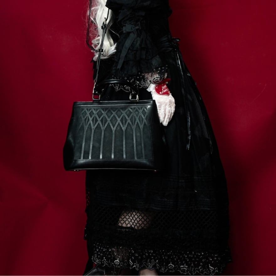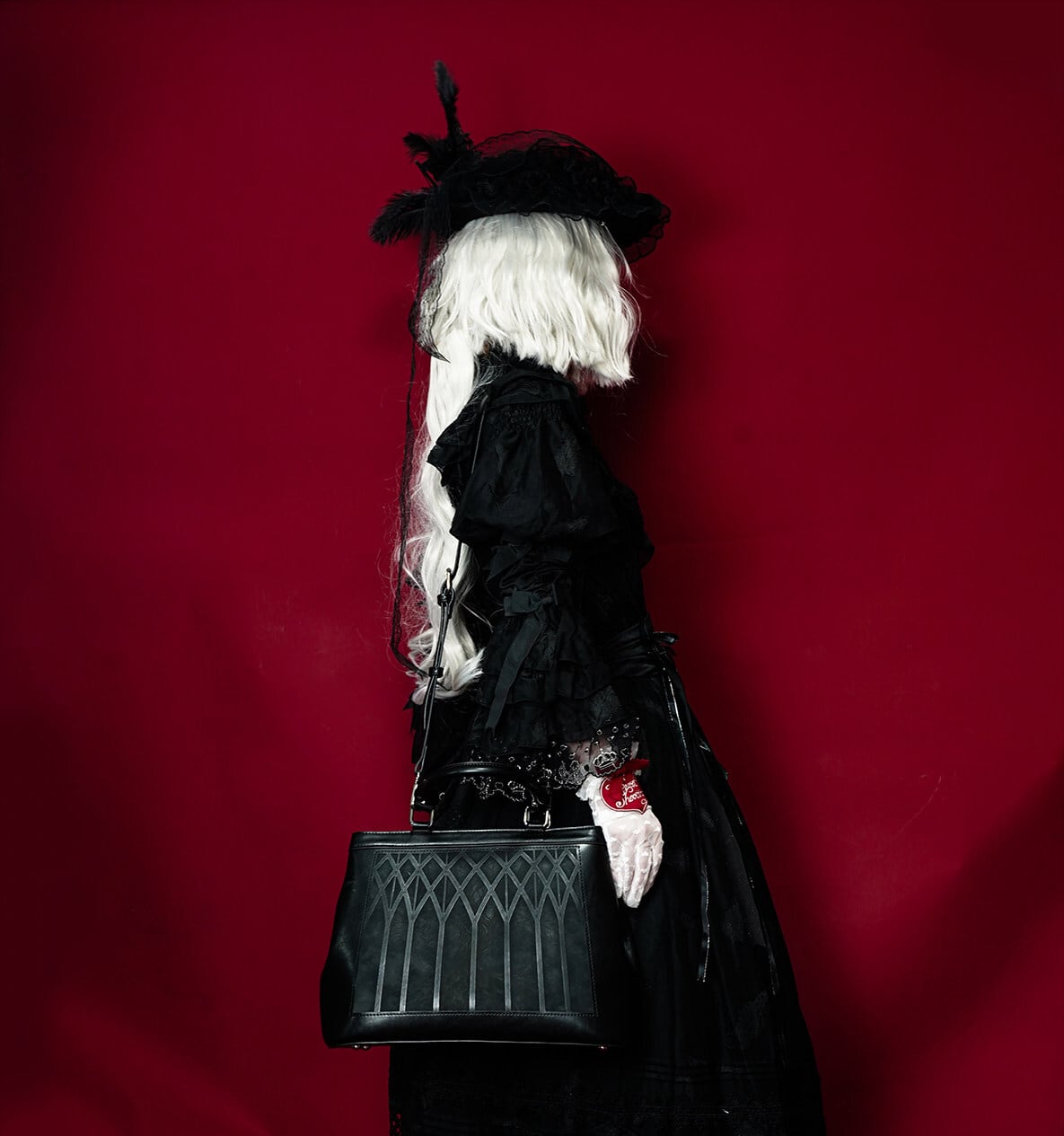 建築風の型押しデザインが重厚感を演出。実用性も高く、撮影・イベント・普段使いまで幅広く活躍するゴスロリバッグです。