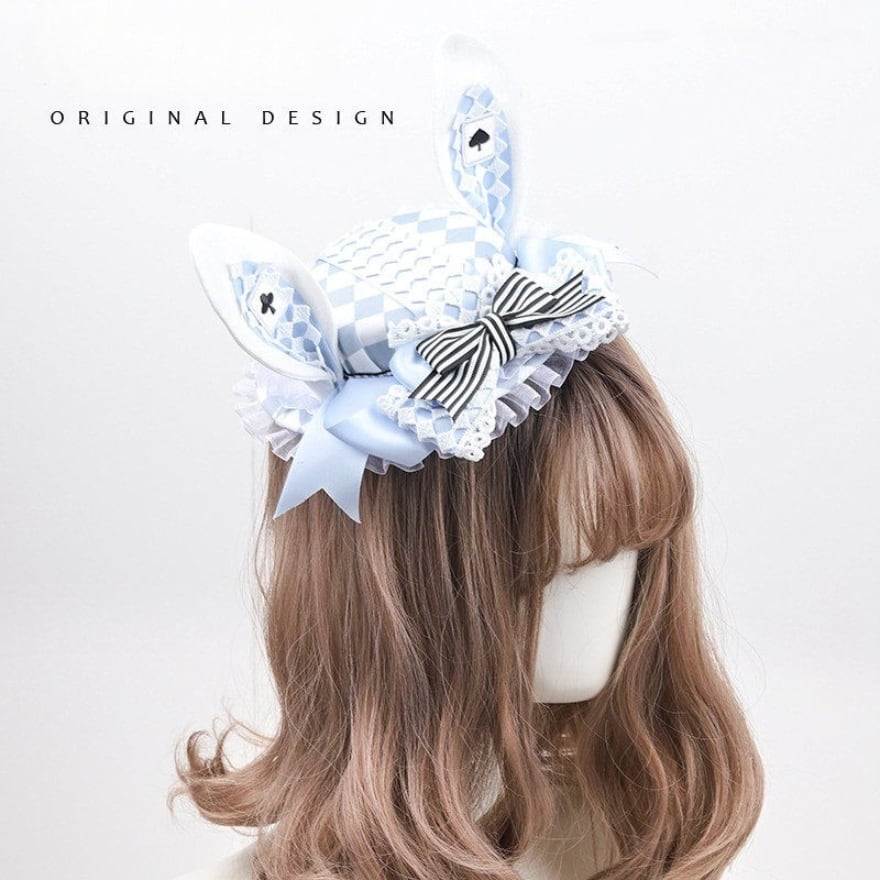 ブラック×ホワイトのストライプリボンに、トランプモチーフを添えたクラシカルなロリィタヘアアクセサリー。
