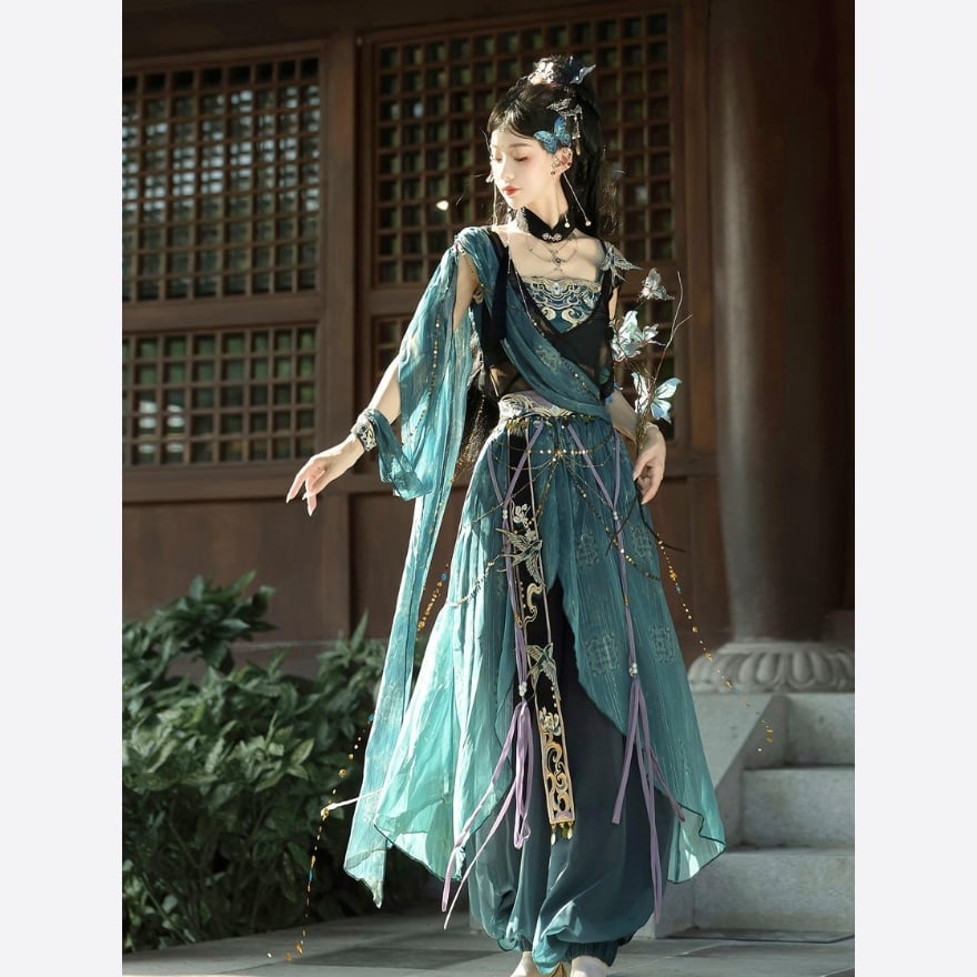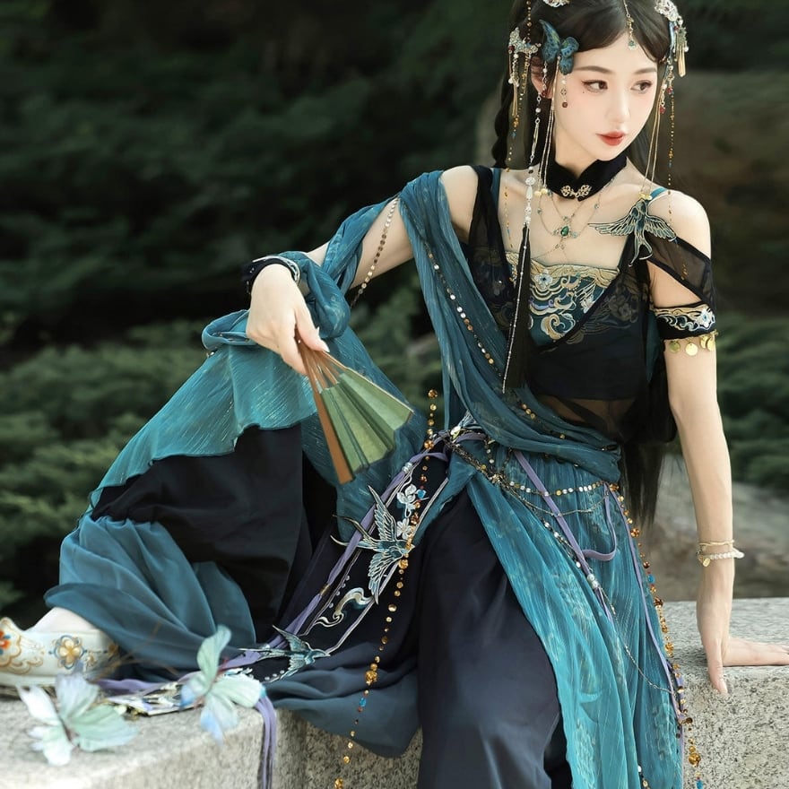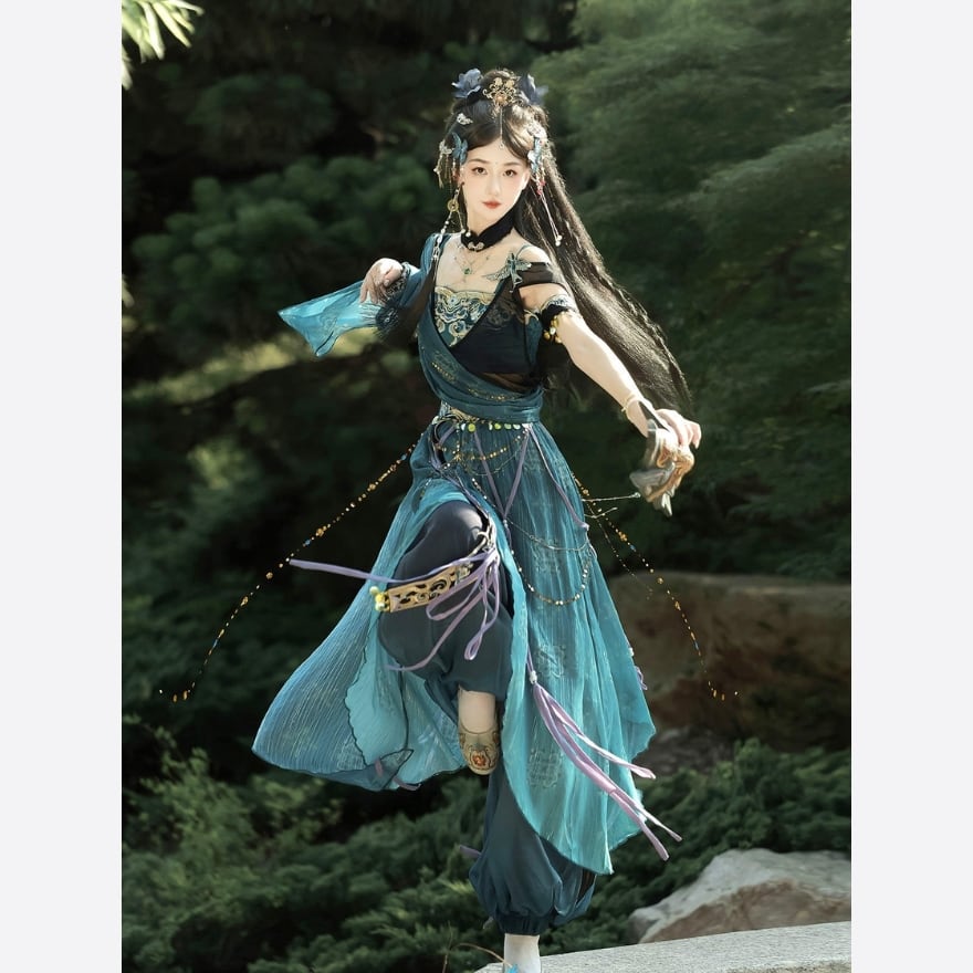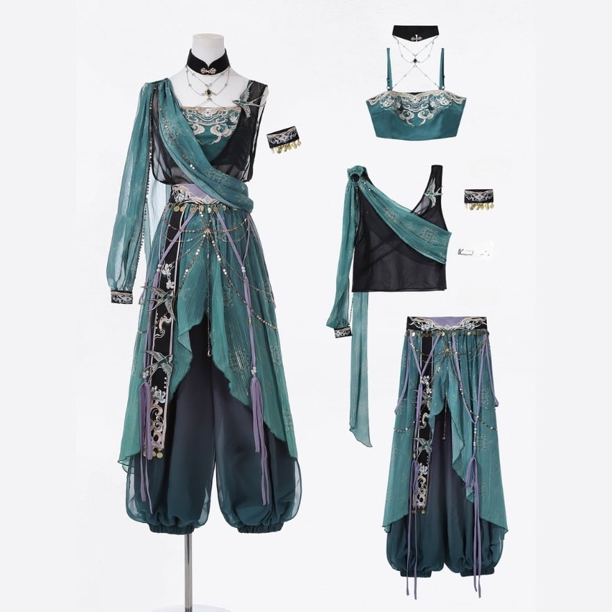 イベント 舞台衣装に| エキゾチック 孔雀 刺繍 セットアップ 異国 幻想衣装 コスチューム