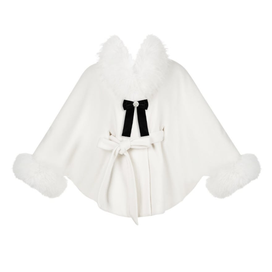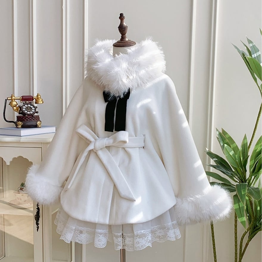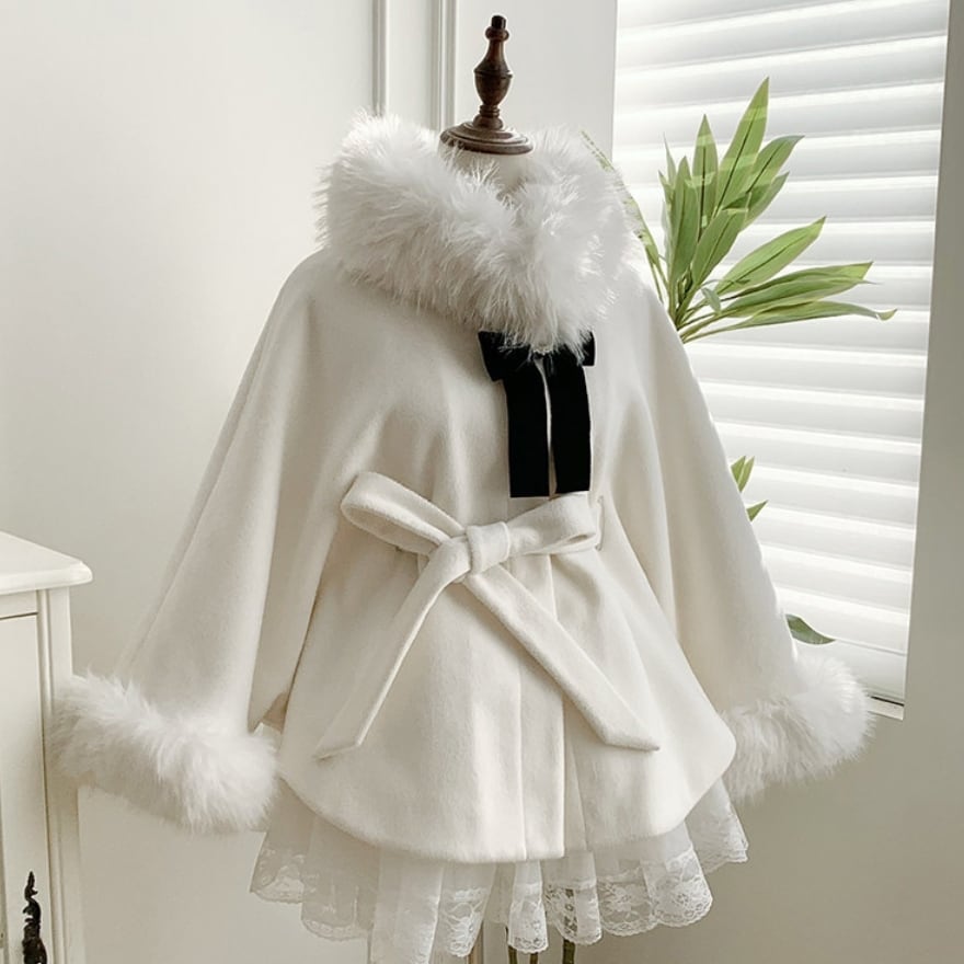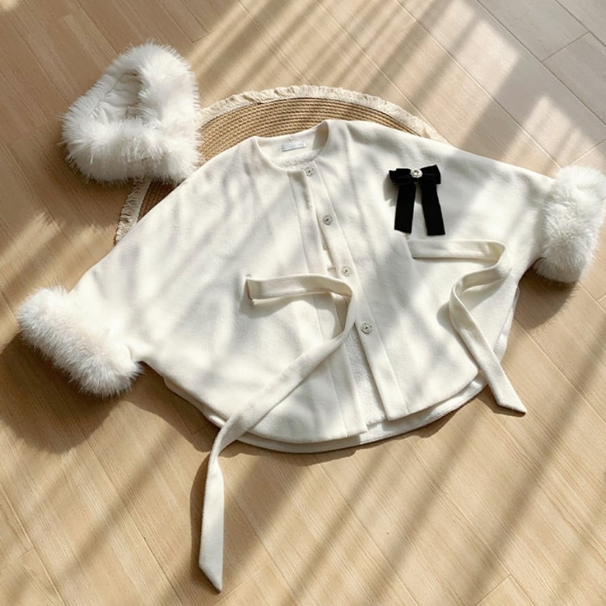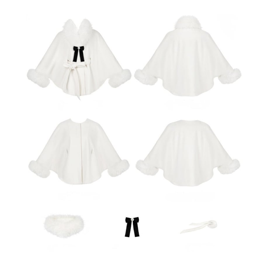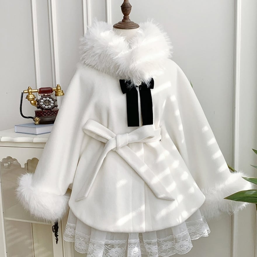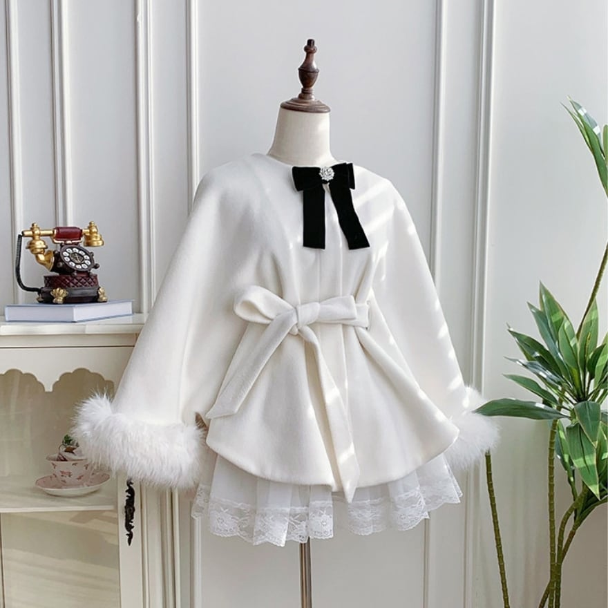 コート+ファーカラー+リボンブローチ+ベルト(4点セット)