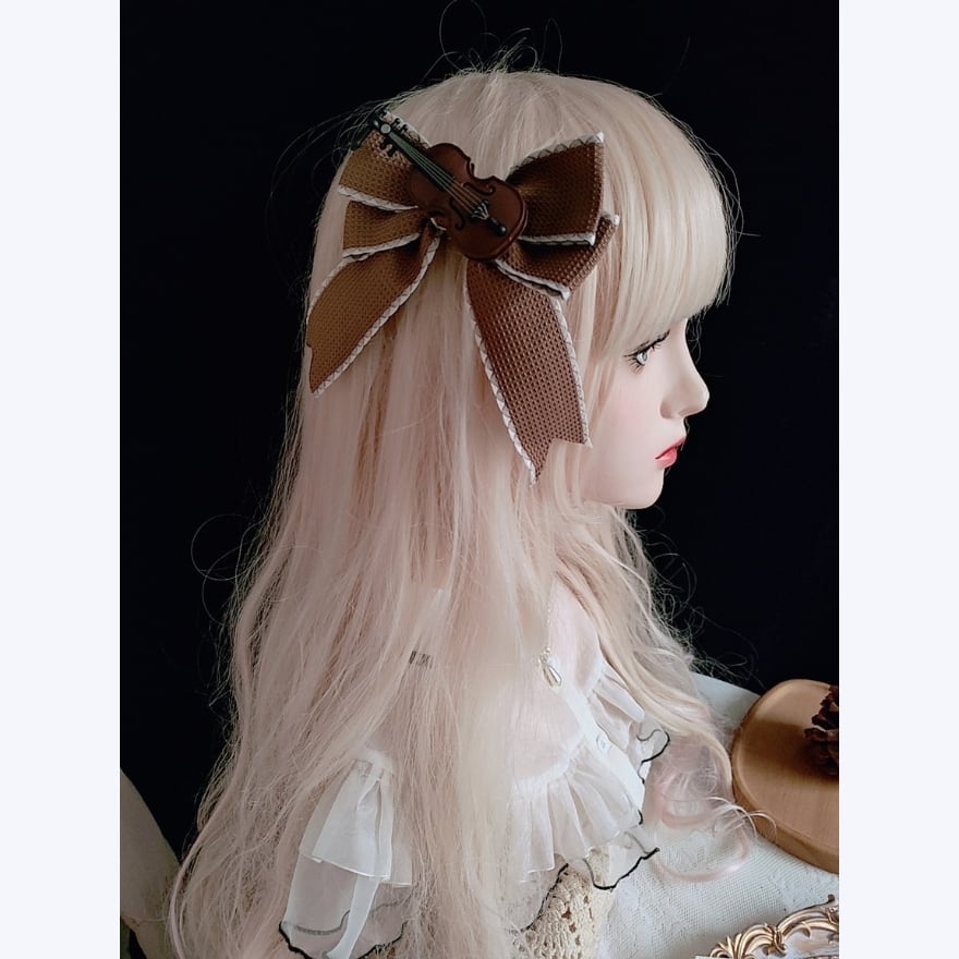 サイドに添えられた優雅なリボンと、精巧な楽器デザインの調和はまさに芸術。