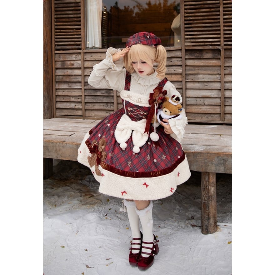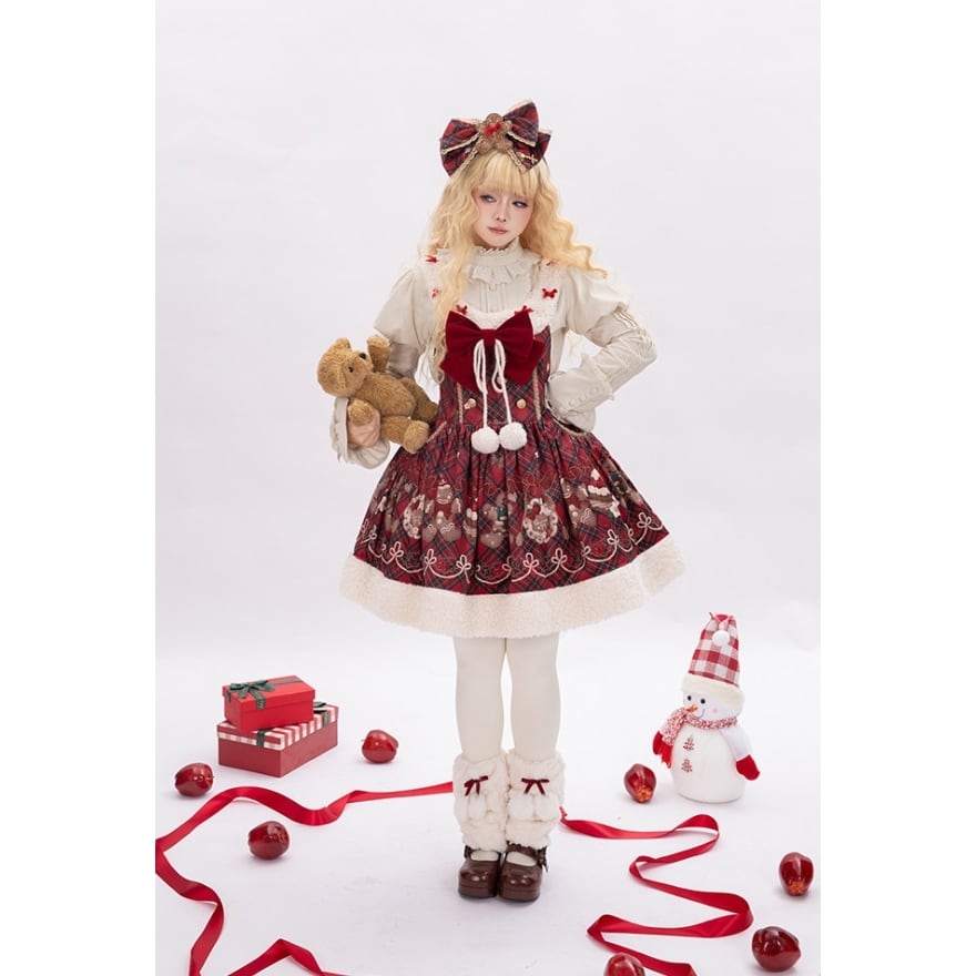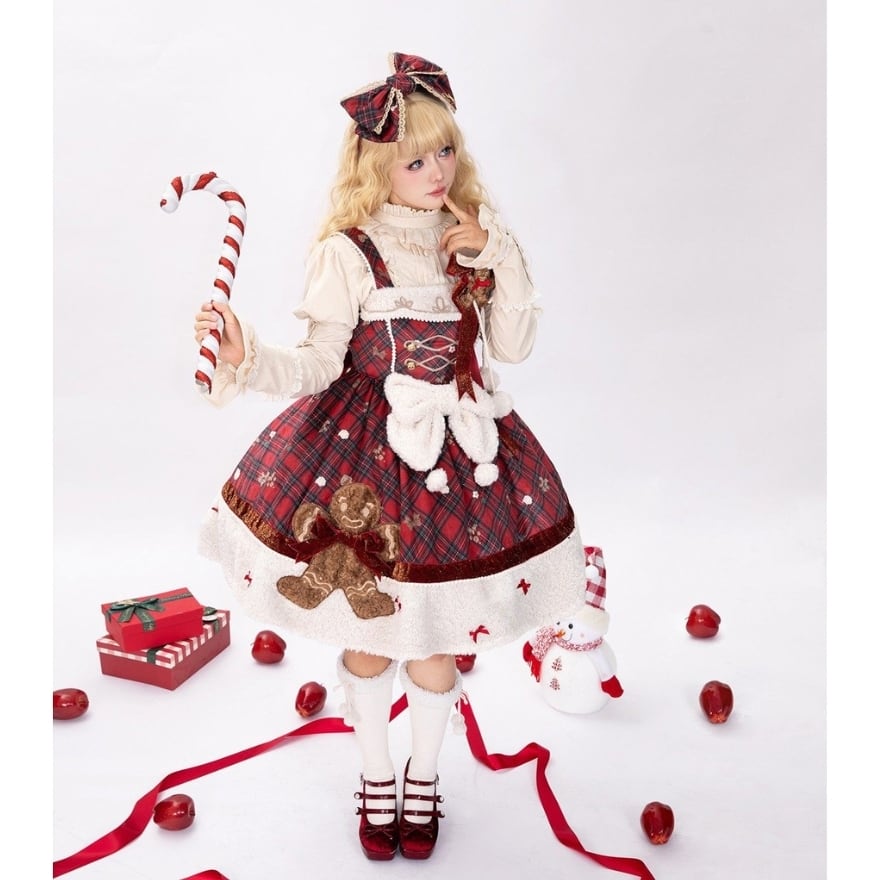 聖夜の甘い魔法にかけられて ジンジャーマンが踊る、冬限定の愛らしさを纏うタータンチェック ジャンパースカート
