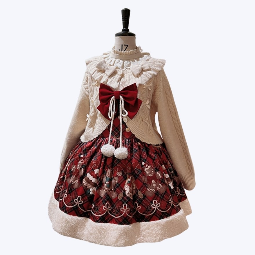 ・クリスマスモチーフを取り入れたチェック柄ロリィタデザイン