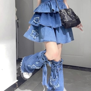 多層のティアードフリルと、星型のダメージ加工が唯一無二の存在感を放ちます。