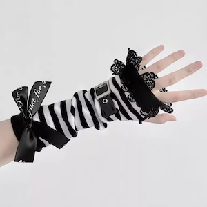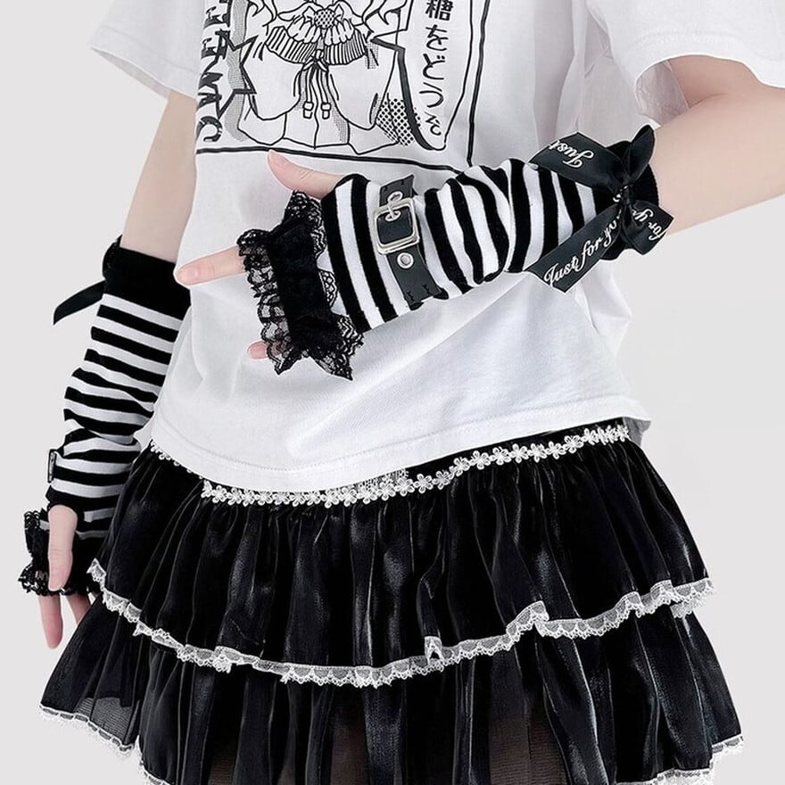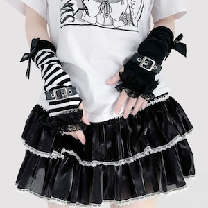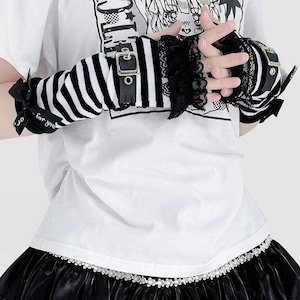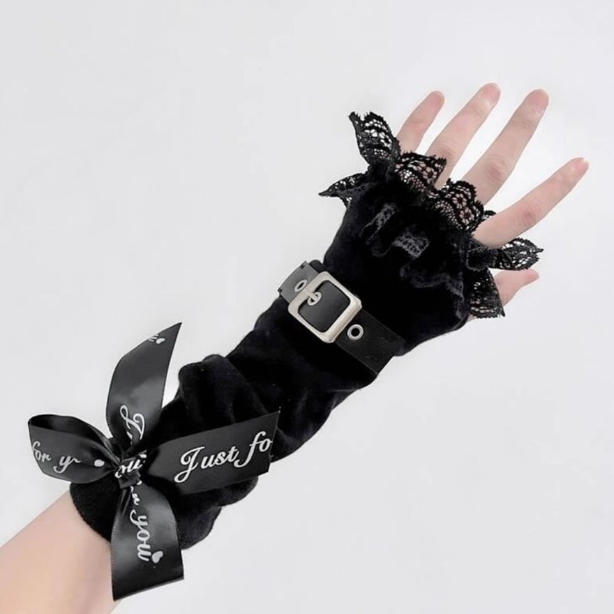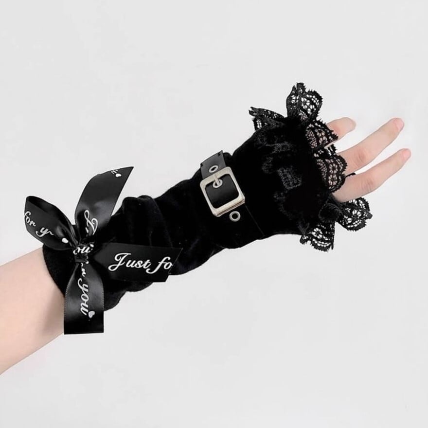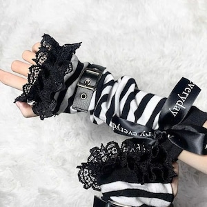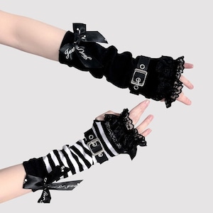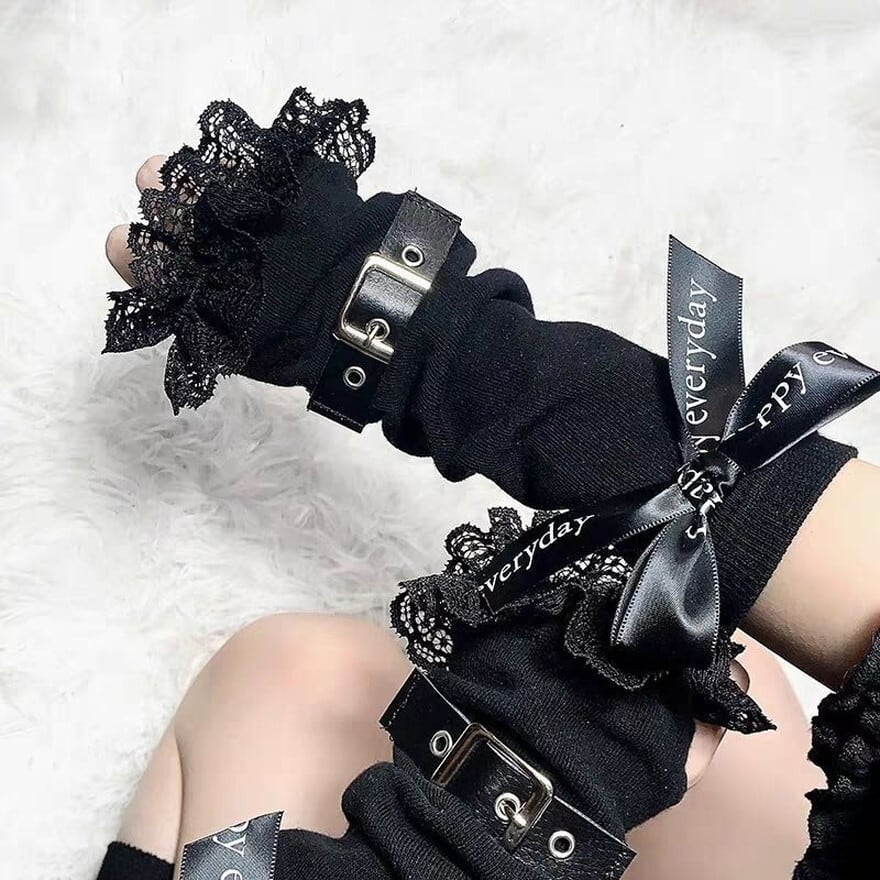 ゴスロリや地雷系ファッションのアクセントに最適な、バックルベルト付きアームカバーです。