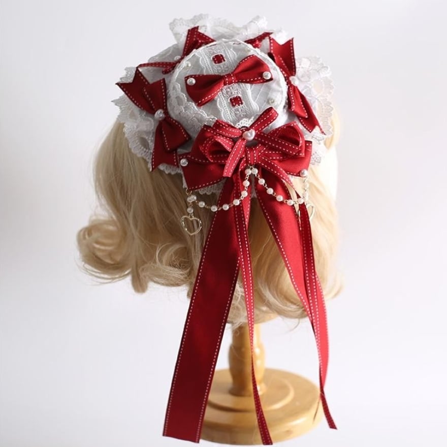 ロリータファッションの主役になる、華やかな装飾のミニハットです。