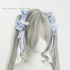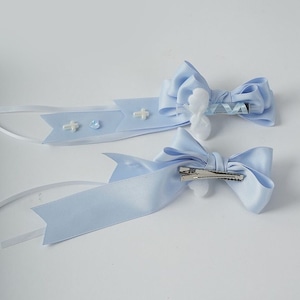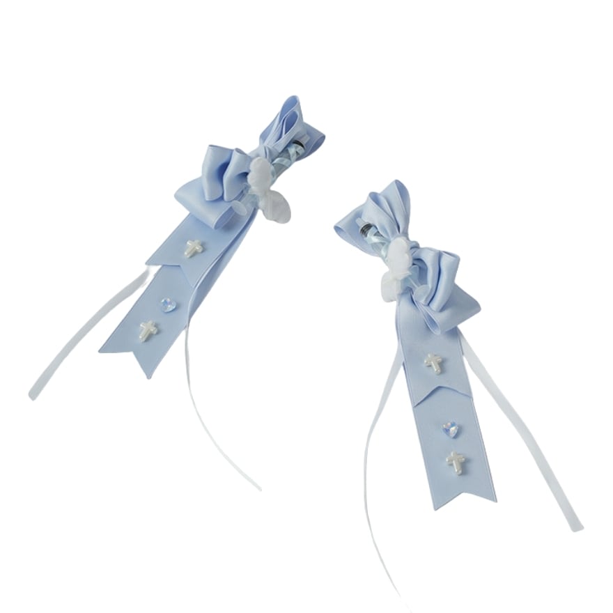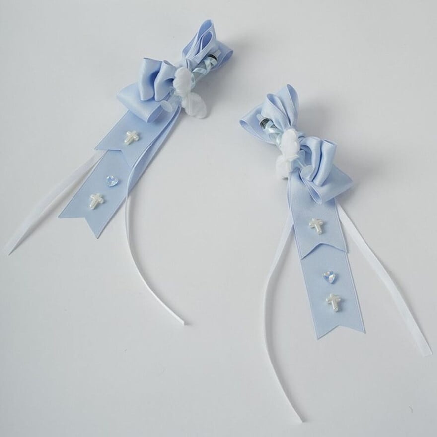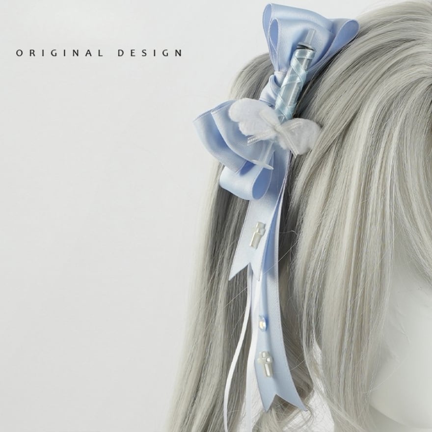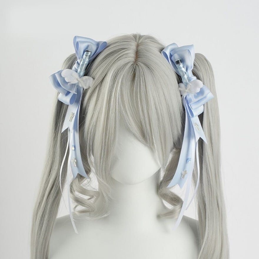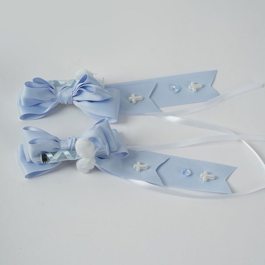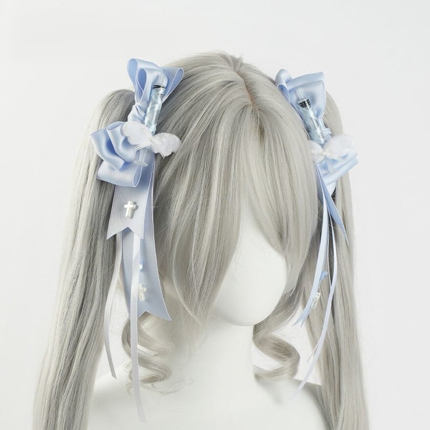 天使界隈を彩る透明感|注射器と十字架が映える、あざとかわいいリボンクリップ(2点セット)