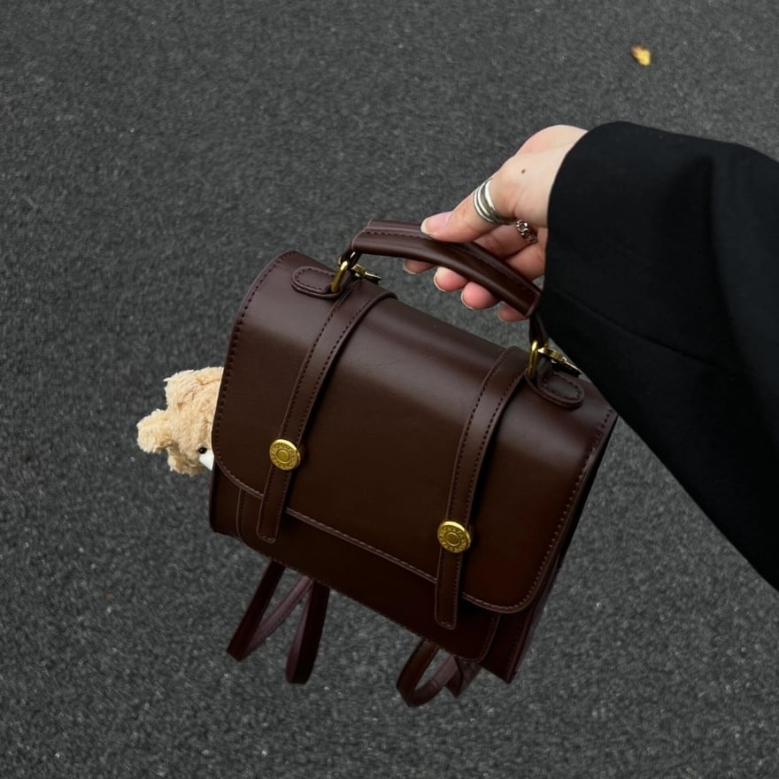 アンティーク調の深いブラウンが魅力の、英国風サッチェルバッグです。